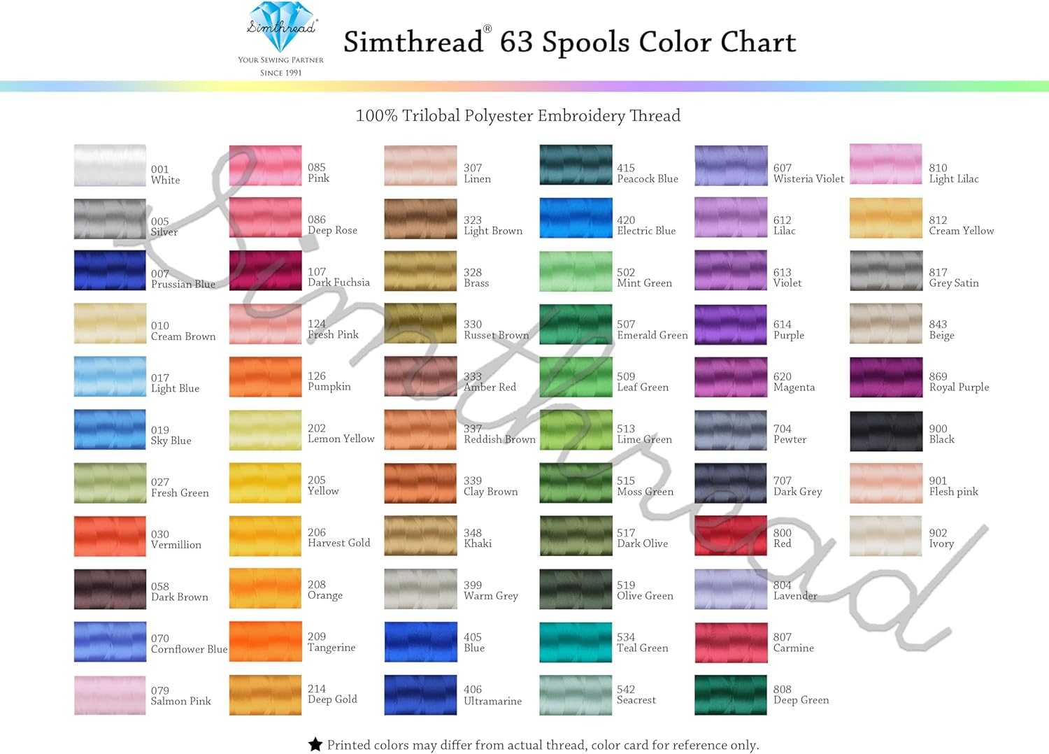 - SIMTHREAD - Over 20 years manufacture experience, giving you the incredible value Polyester Embroidery Machine Thread. Happy sewing and Embroidery your own colorful life