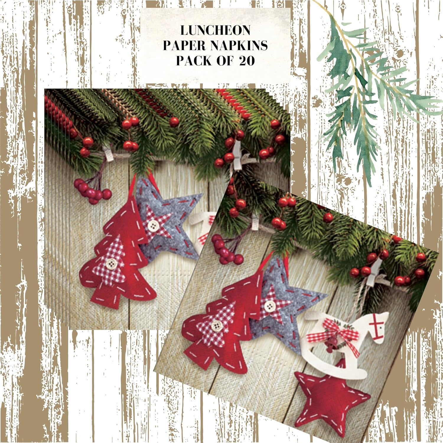 20-ct 13x13 Christmas Paper Decoupage Napkins, 3-Ply Servilletas Tissue Napkin for Dinner and Parties, Disposable Napkins (Stars)
