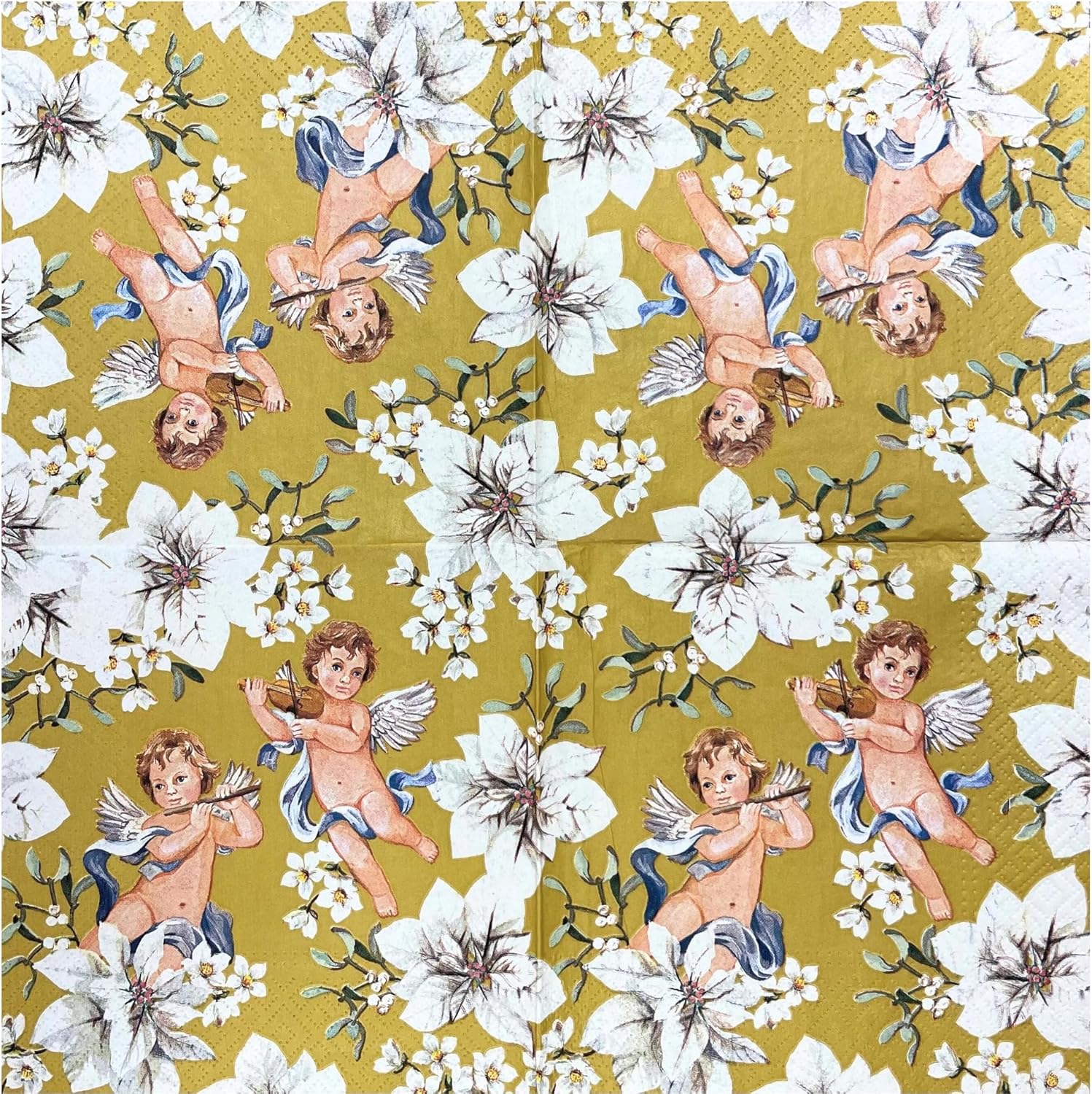20-ct 13x13 Christmas Paper Decoupage Napkins, 3-Ply Servilletas Tissue Napkin for Dinner and Parties, Disposable Napkins (Angel Flower)