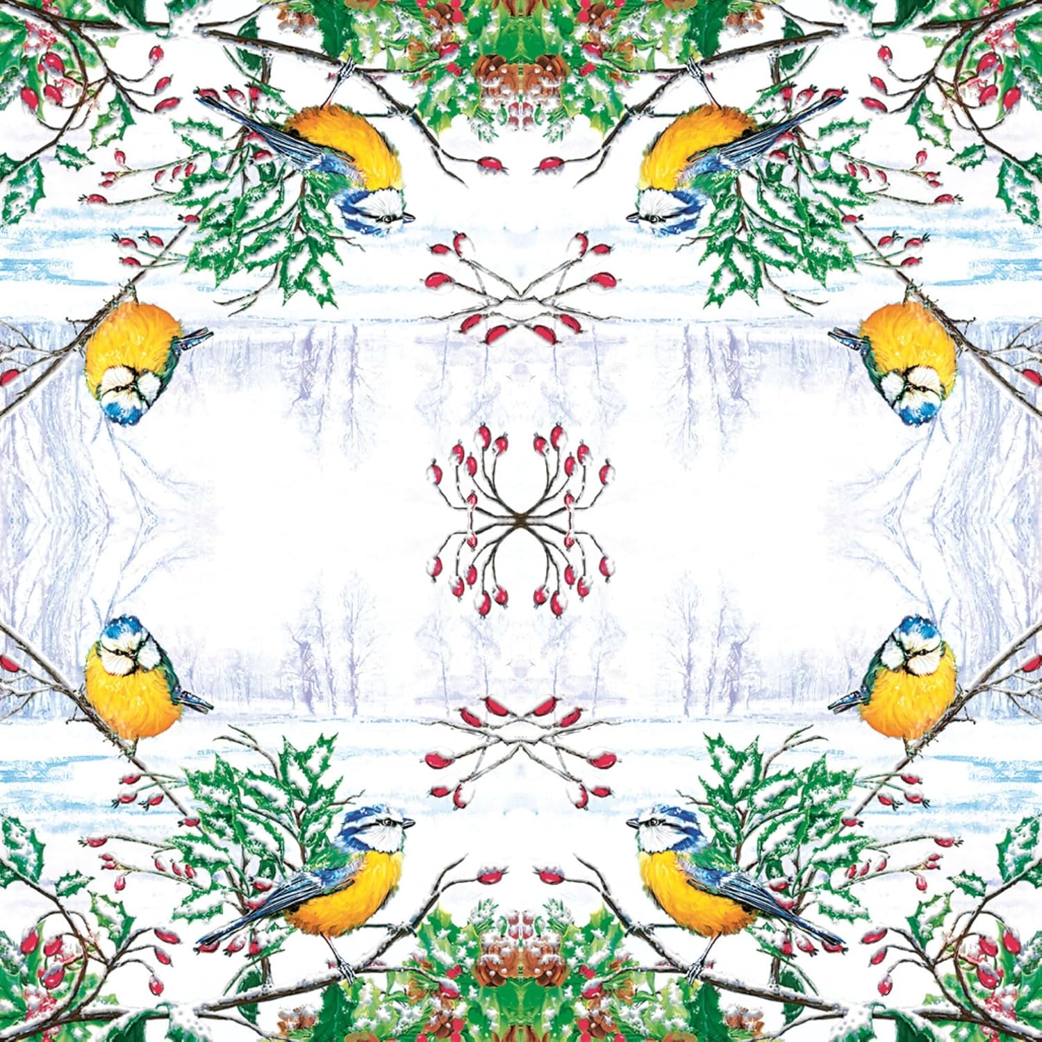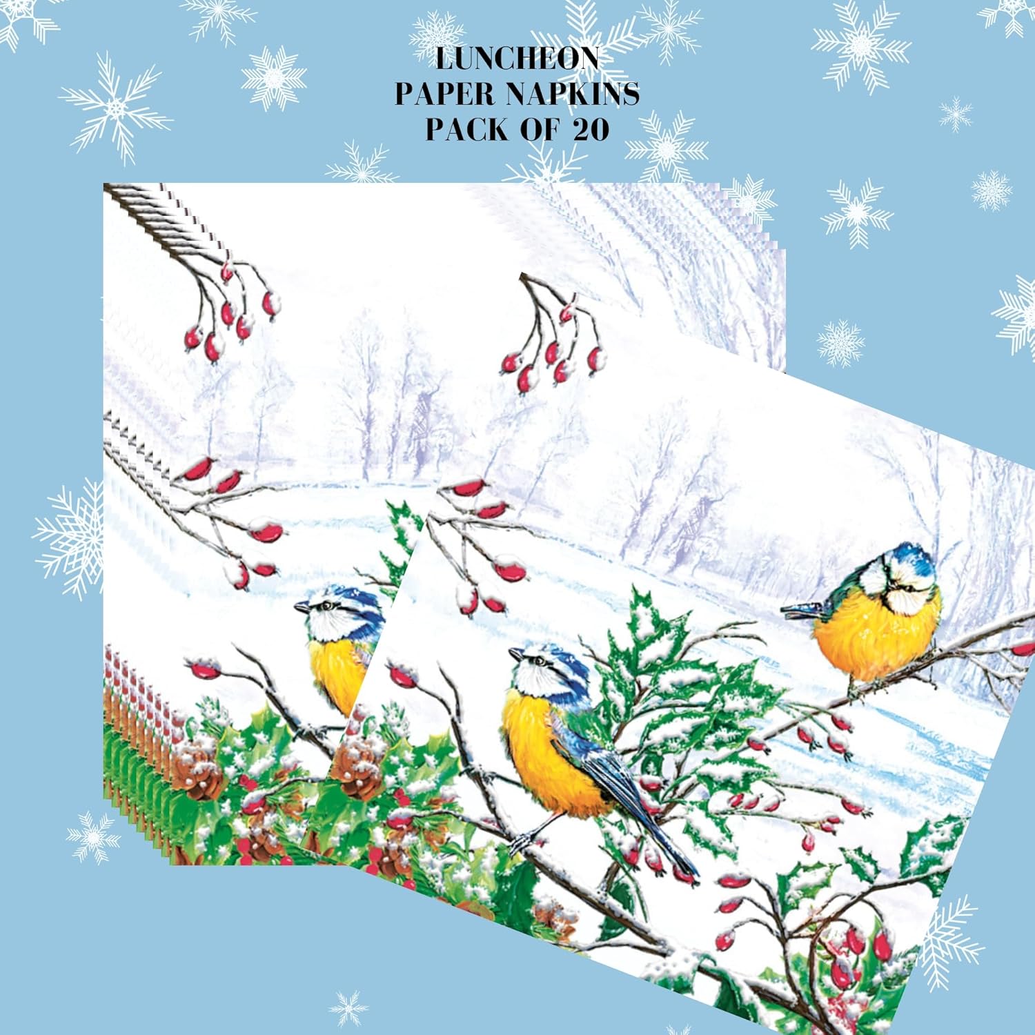20-ct 13x13 Christmas Paper Decoupage Napkins, 3-Ply Servilletas Tissue Napkin for Dinner and Parties, Disposable Napkins (Winter Tits)