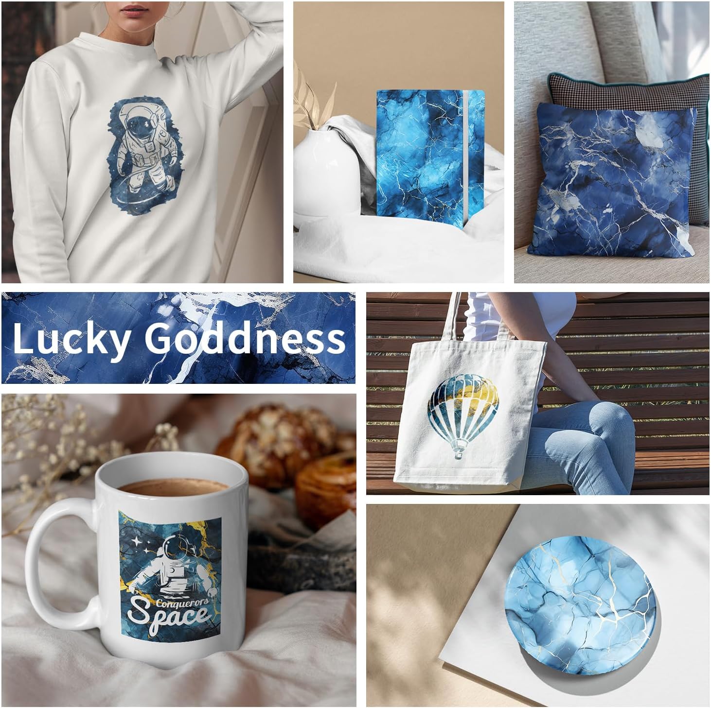 - 【 LUCKY GODDNESS SUBLIMATION TRANSFER SHEETS VS HTV】Unlike iron-on transfers or vinyl applications where your artwork is attached on top of a compatible material using adhesive,Transfer paper results in no edges or seams. The results are bright, beautiful, and seamlessly smooth transfers that are flake-proof, peel-proof, and wash-proof.
