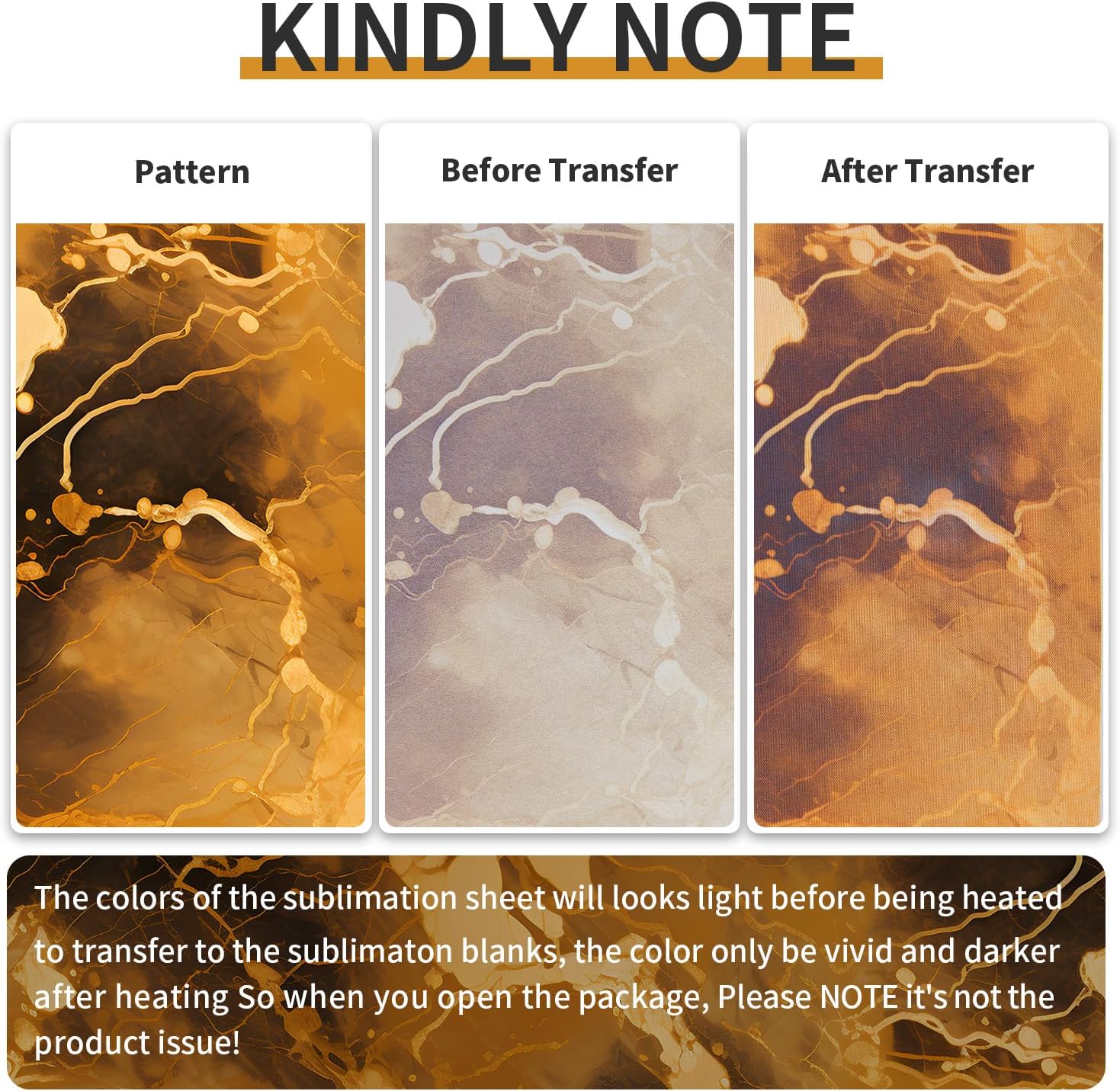 Sublimation Transfer Sheets for Heat Press Machine,Orange Gold Marble Sublimation Sheets for Tumblers Blanks Tshirts,6 Sheets 12x12inch