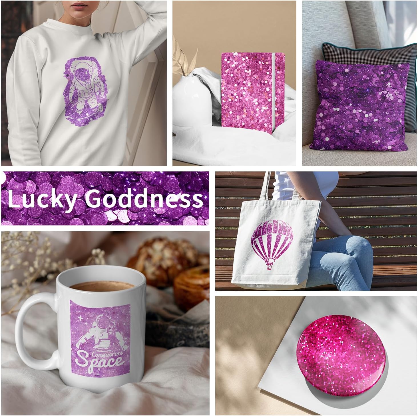 Sublimation Transfer Sheets for Tumblers Blanks Tshirts,Purple Glitter Sublimation Transfer Paper for Heat Press Machine,8pcs,12x12