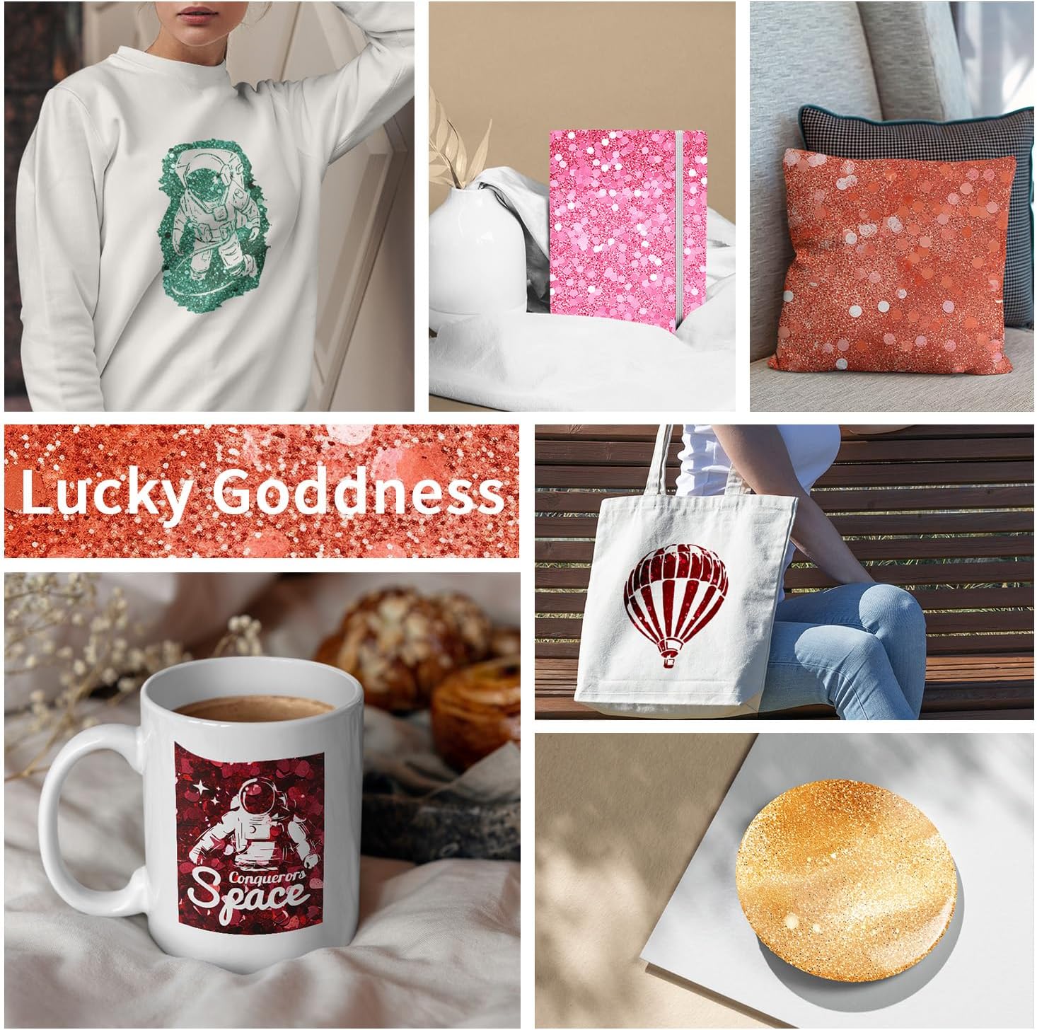 - 【 LUCKY GODDNESS SUBLIMATION TRANSFER SHEETS VS HTV】Unlike iron-on transfers or vinyl applications where your artwork is attached on top of a compatible material using adhesive,Transfer paper results in no edges or seams. The results are bright, beautiful, and seamlessly smooth transfers that are flake-proof, peel-proof, and wash-proof.