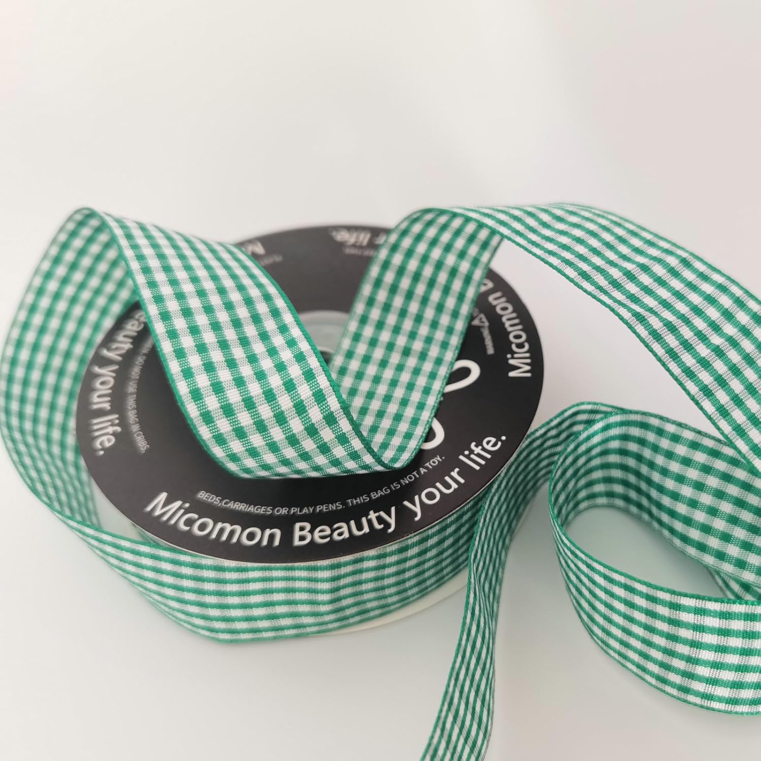 Green and White Woven Edge Plaid Ribbon 100% Polyester Gingham Ribbon 25 Yards Each Roll (1",Green)
