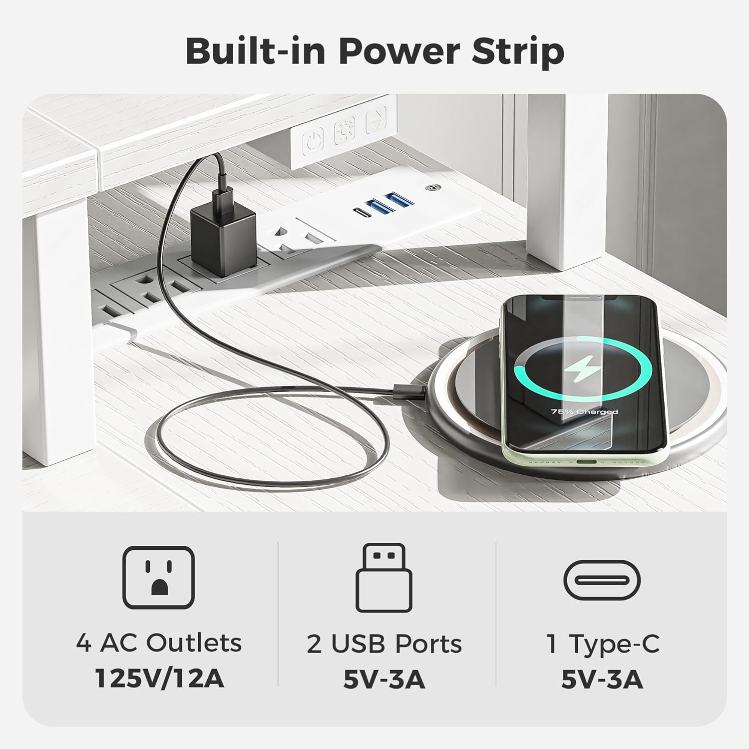- ăPower Strips & Monitor ShelfăThis computer desk is equipped with4 Standard Plug Outlets, 2 USB Ports, and 1 Type-C port, which can easily charge phones laptops, gaming gear and other office devices. Monitor stand on the desktop elevates your line of sight, allowing you to maintain proper sitting posture and protect your cervical and spinal health