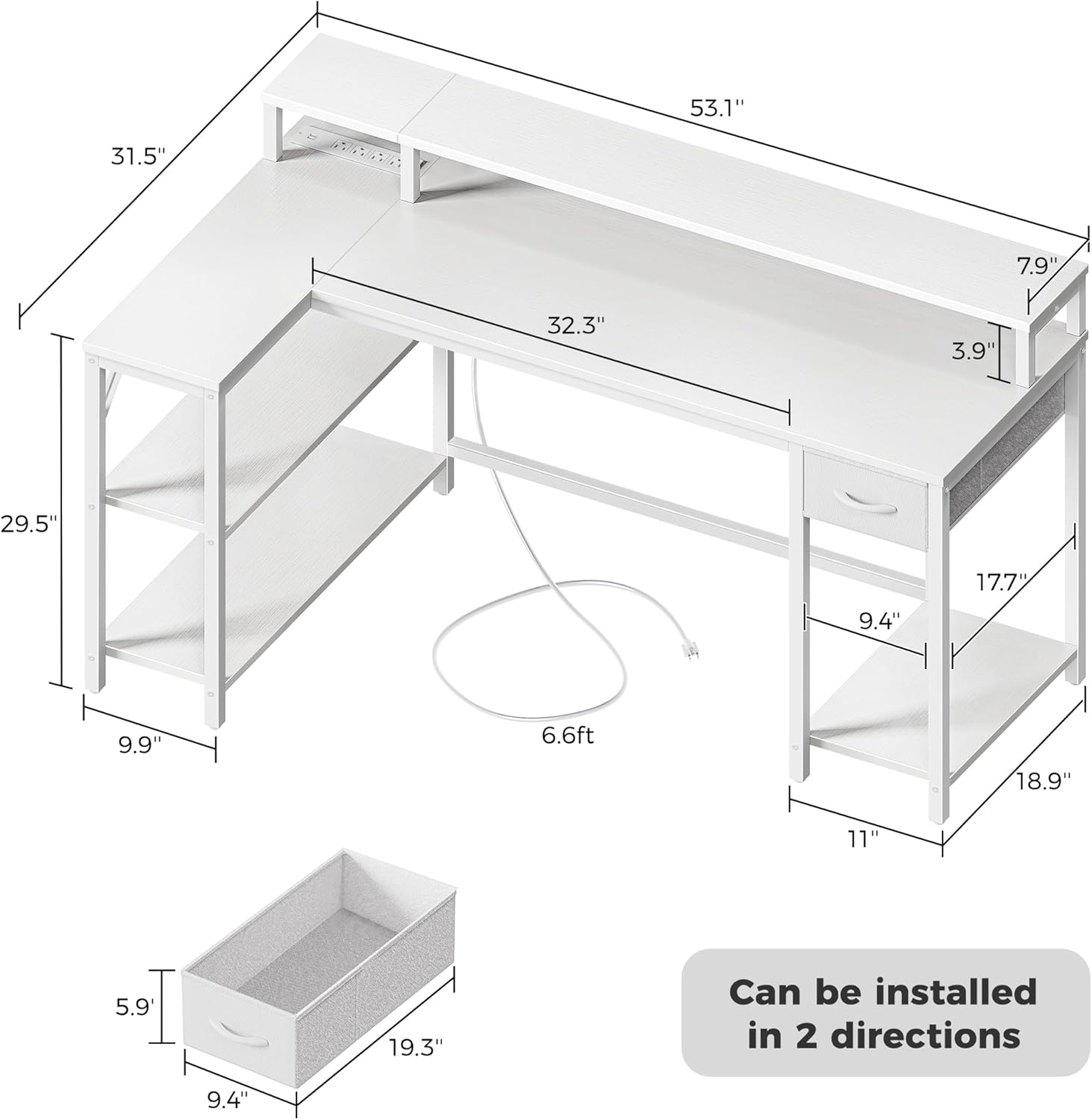 - ăReversible L Shaped DeskăWith reversible design, this home office desk can be installed in 2 directions according to your needs, good choice for your bedroom, study and office. The L shaped design suits for corner space perfectly
