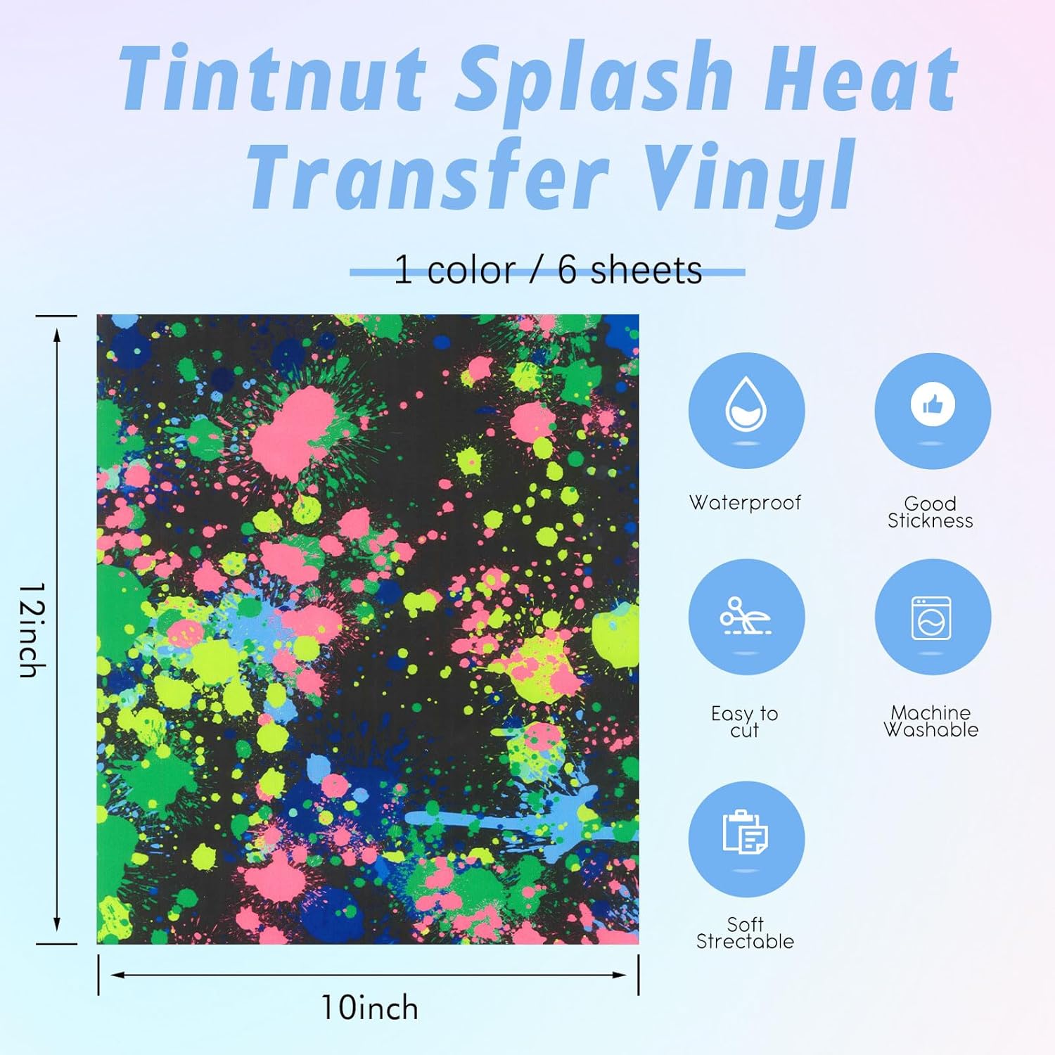 Tintnut Blue Splash HTV Transfer Vinyl - 6 Sheets 10"x12" Watercolor Patterned HTV Iron On Vinyl for T-Shirts & Hats