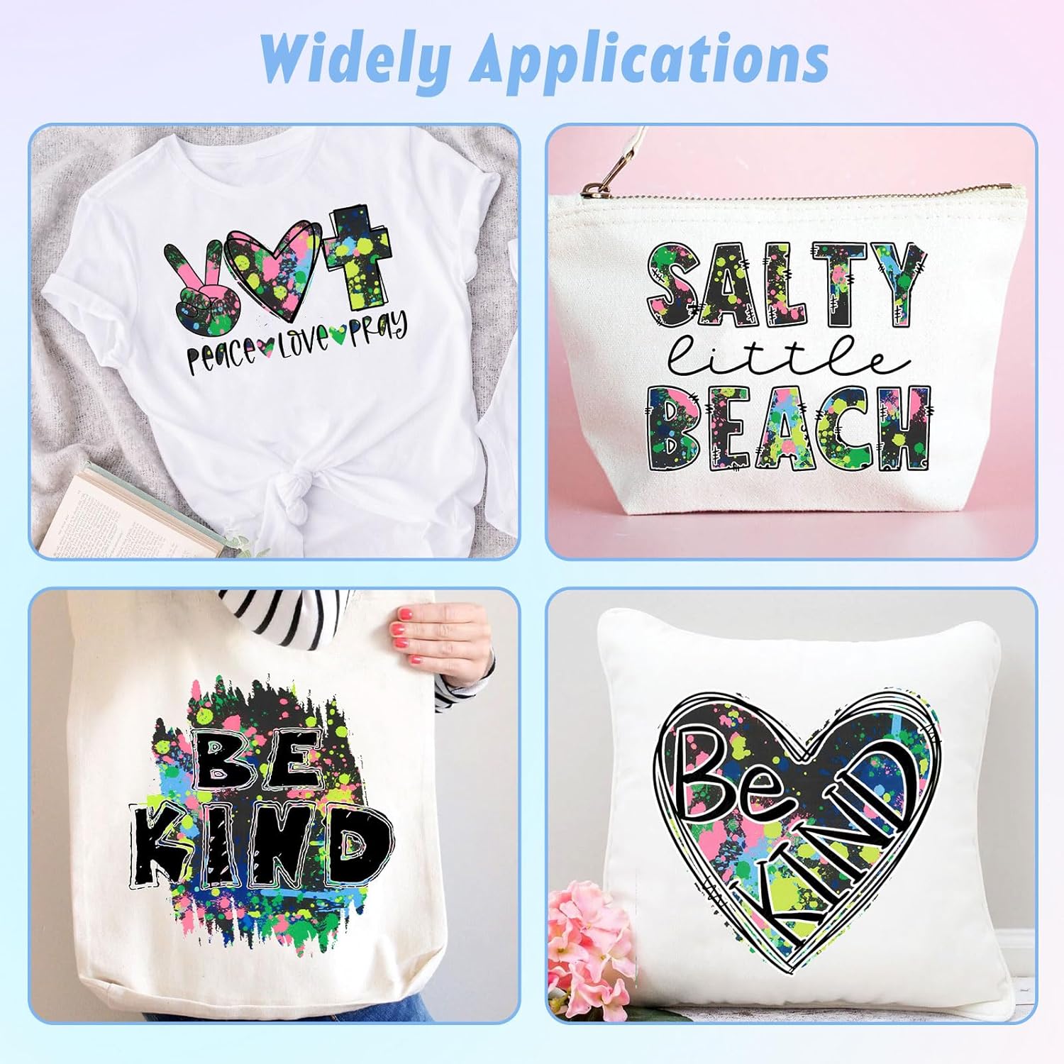 - 【WIDELY TRANSFER】This iron on vinyl can be use to do your own design of T-shirts, shoes, caps, coffee bags,handbag, pillows and so on. Widely applied on many fabric for cotton, polyester and cotton fabrics.