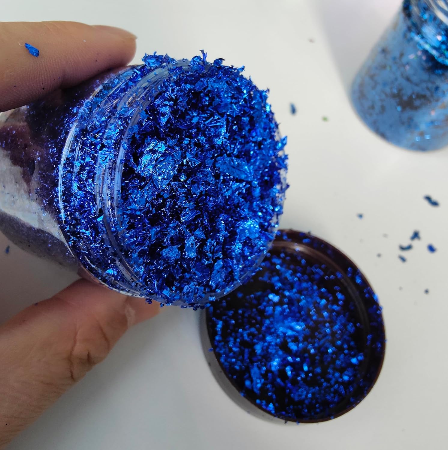 Gilding Flakes,Gold Foil Flakes for Resin,Blue Red Purple Pink Metallic Foil Flakes for Resin Jewelry Making,Nails,Painting Art,Crafts and Slime (Blue)