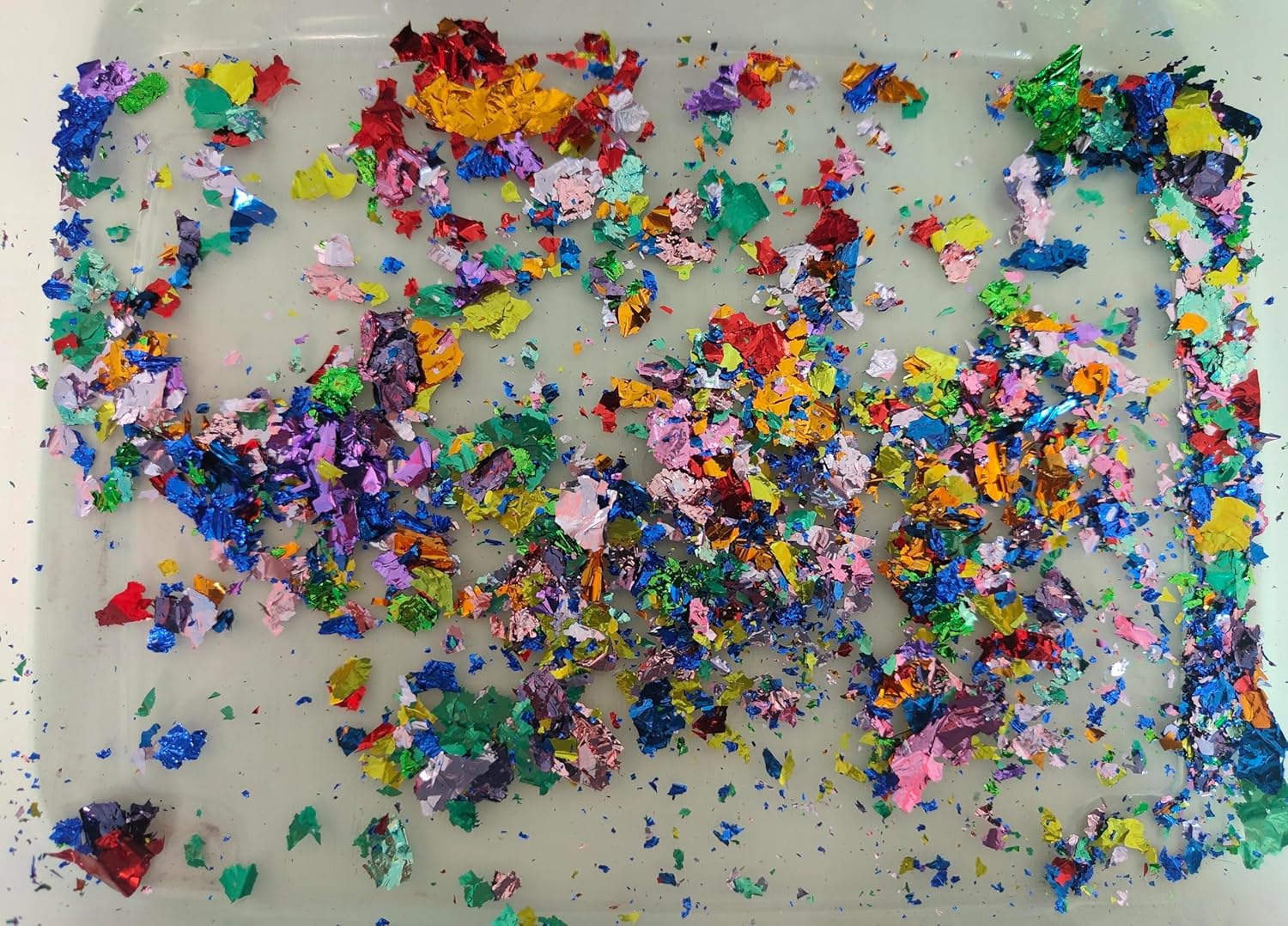 - Vibrant and Brilliant Colors: Big piece of green, blue, purple, red foil flakes. they can create a stunning shiny textured effect to make your crafts look special,not easy to bleed and oxidize, the stunning shine always last a long time.