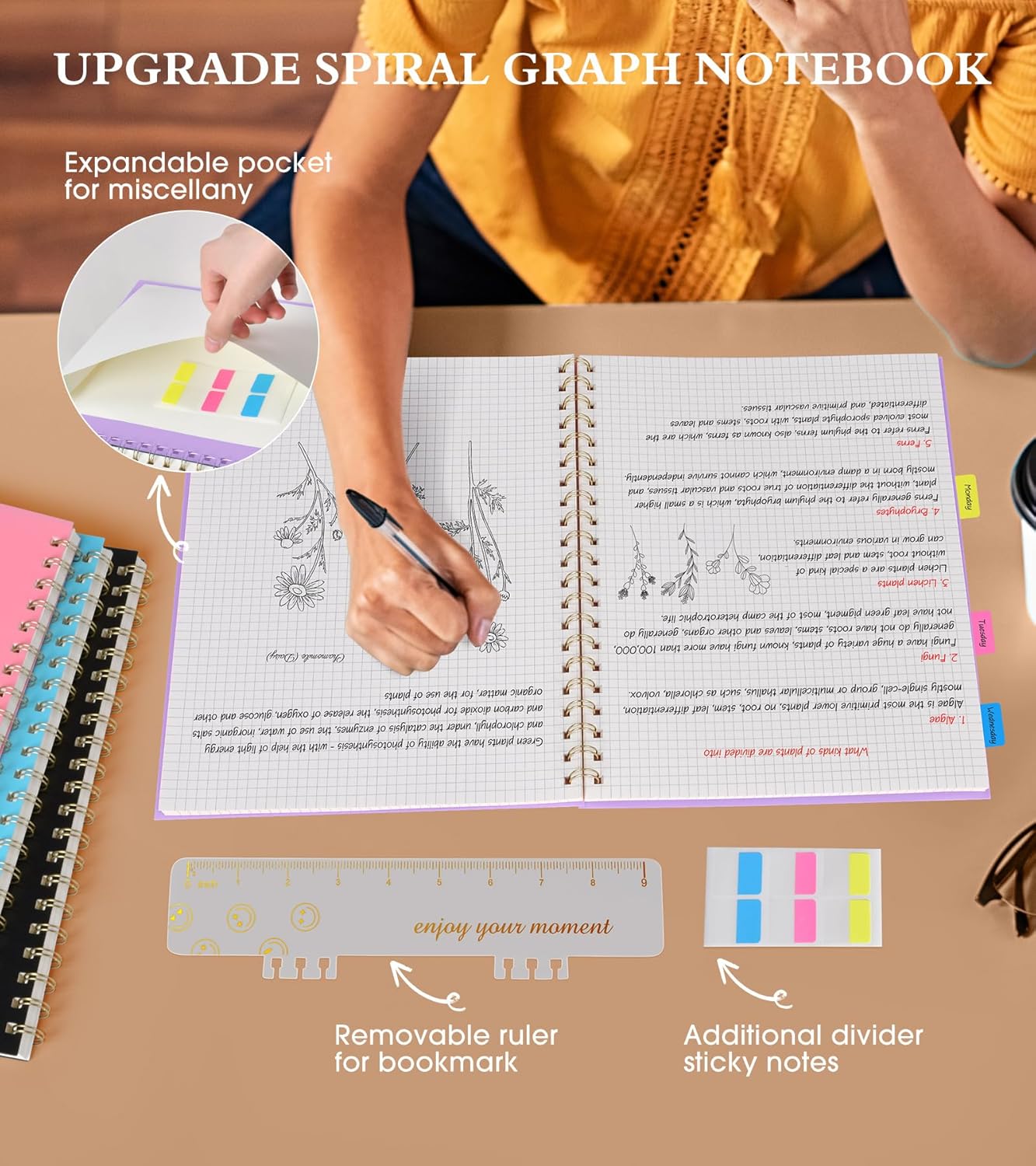- 【Multiple Usage & After Sale】 Purple spiral graphing journal perfect for school, office, home, work organization, college, students, adults, travelers, business executives, scientists, and people in many other fields. Suitable for writing journals, study, engineering notebook, drawing, sketching, travel journals, work notebooks or for taking notes in college classes or meetings. If you encounter quality problems, please contact us, we will give you a full refund or replacement!