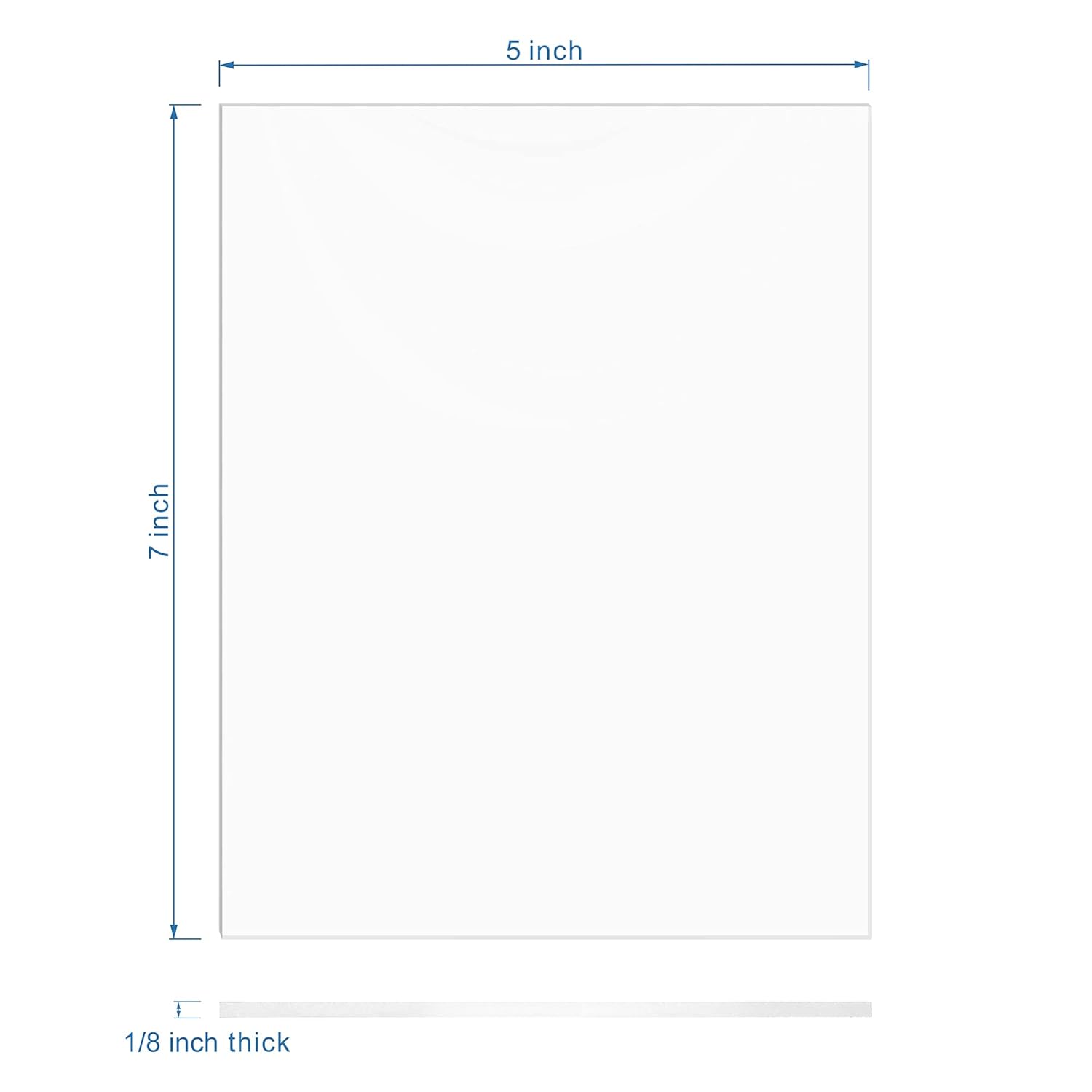 - It measures 5 x 7 inches with 1/8 inch thick (0.118" / 3mm nominal). Please remove the protective paper on both sides of the acrylic piece before use.
