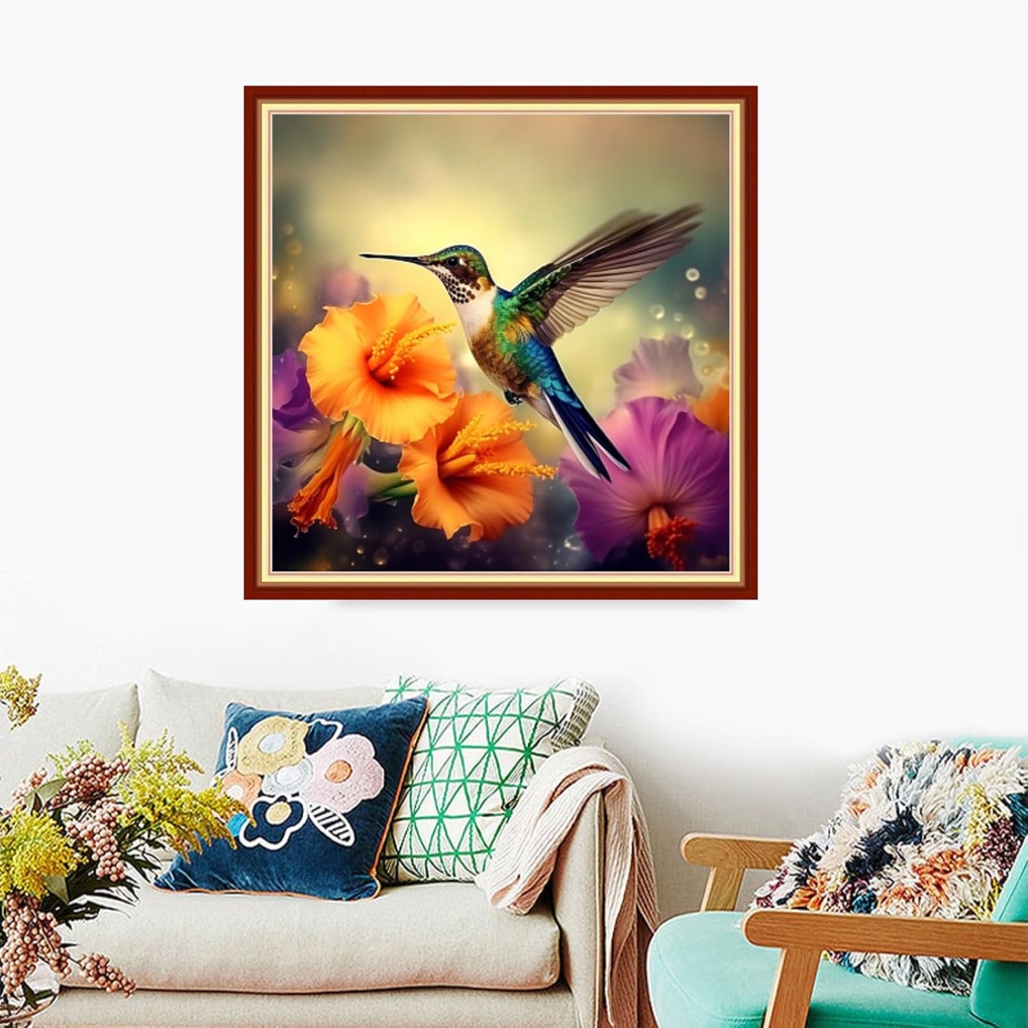 Foxdiviy Stamped Cross Stitch Kits Full Range of Embroidery Needlework Starter Kits for Beginners Adults 11CT Embroidery Patterns Art Crafts DIY Needlepoint Kits-Hummingbird Flowers 18x18 inch