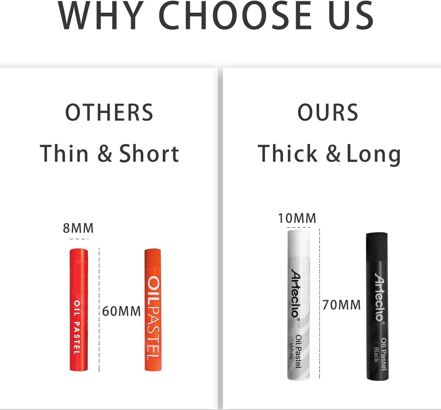 - Brilliant Colors: Artecho artist soft oil pastel includes 6 white colors and 6 black colors. High-quality pigments