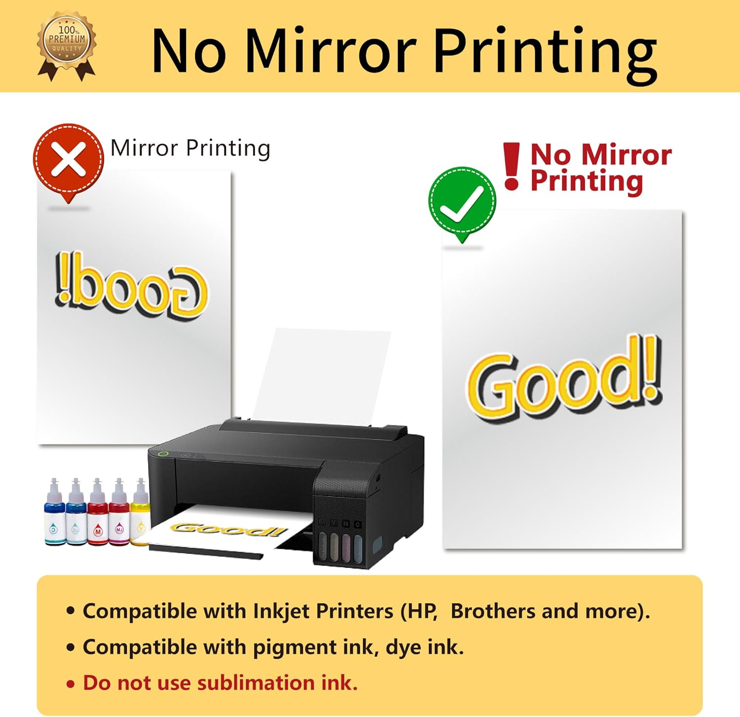 - 💕REQUIREMENTS: Inkjet Printers (such as HP, Brother and other brands) | Pigment Ink or Dye Ink (Do not use Sublimation Ink ) | Scissors or Cutting Machine | Iron or Heat Press machine | Teflon Paper (included in the pack).