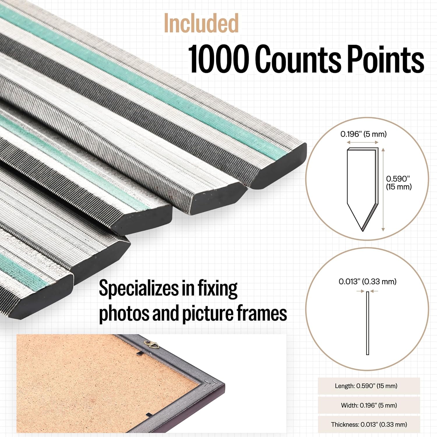 meite Point Driver HM515 Manual Tool with 1000-Count Flexible Point Nails, Picture Framing Tool for DIY Crafts, Frame Point Driver, Picture Frame Stapler/Nailer/Tacker