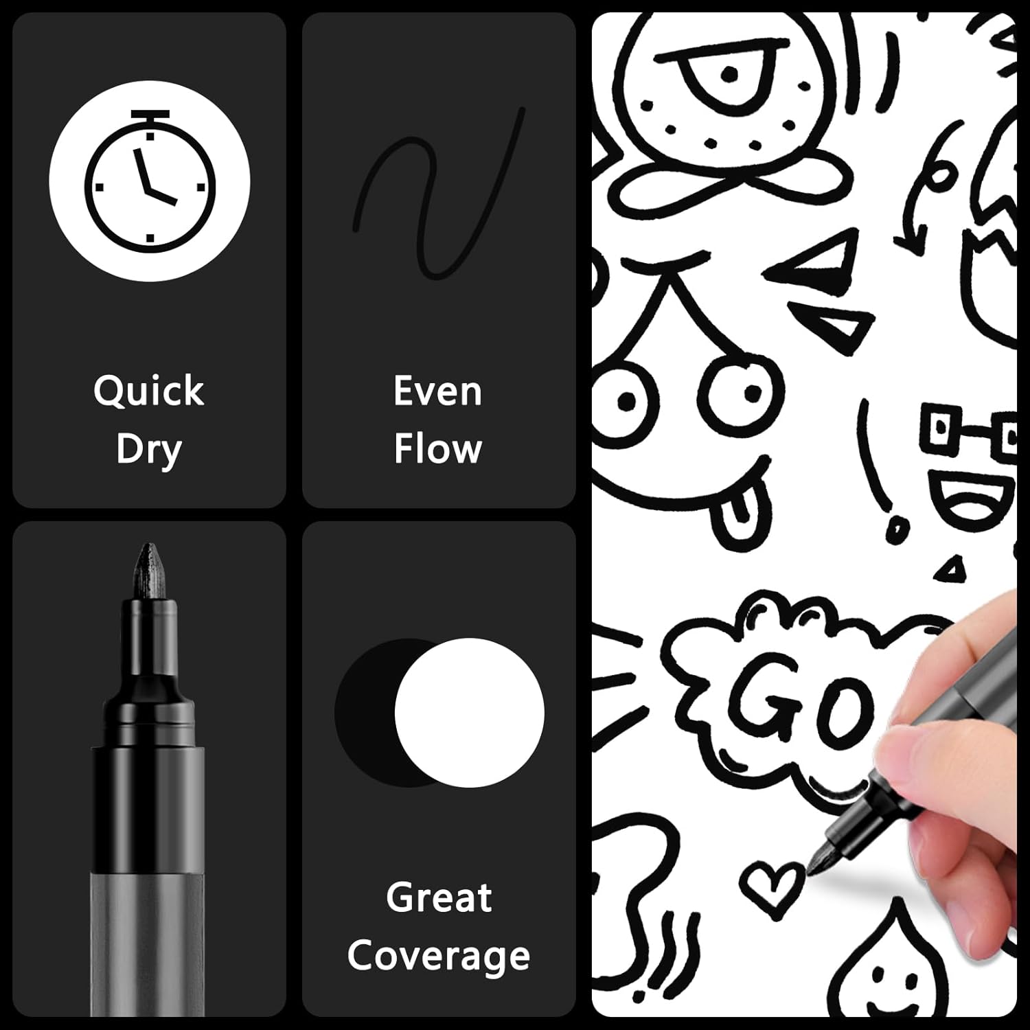 - Precision Meets Durability: Our black acrylic paint pen are perfect for intricate detailing and labeling. Whether you're sketching, doodling, or working on a masterpiece, enjoy exceptional control and resilience.
