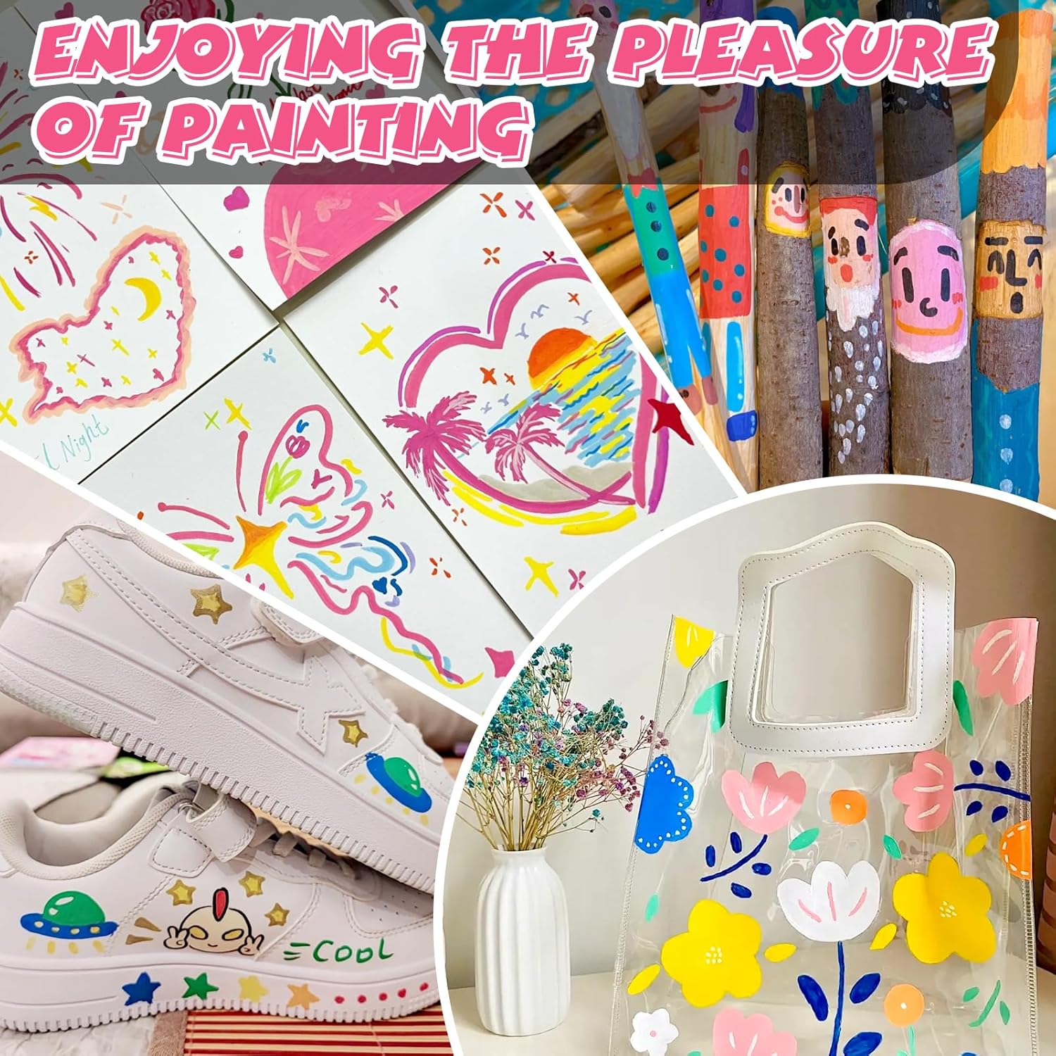 - 【Convenient to Use】Our paint pens with new design.You don't need to shake or press when using it,open the pen cap and you can start your creative journey.our acrylic pens are cotton nibs that it can be used directly.Warm tip:To ensure the smoothness of the ink, please place the pen flat and cover it with a pen cap after use.