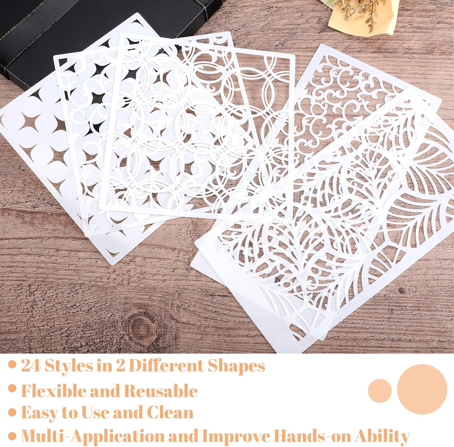 - 【Multi-use】You will get 24 pieces of geometric shape stencils and each style has different patterns, can be used for pigment painting, card making, fabric painting, home decors, scrapbooks, cabinets or gift bags decor and so on.You can match the style of background according to your preference.