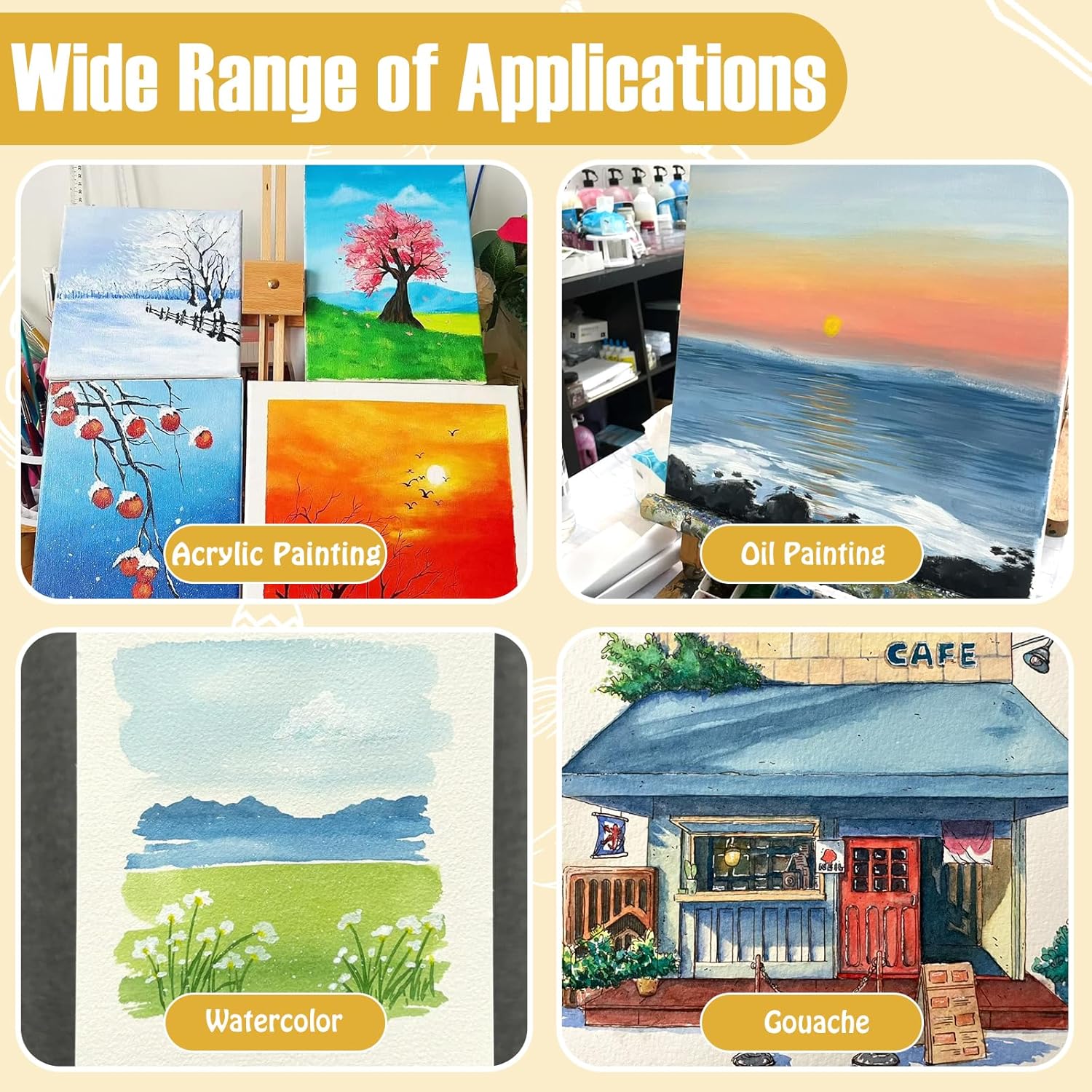 - Matte Varnish for Acrylic Painting: Acrylic paint varnish can make the acrylic painting not yellowing, not wear and tear, aging-resistant, and maintain permanent color, so that your paintings are not eroded by the years