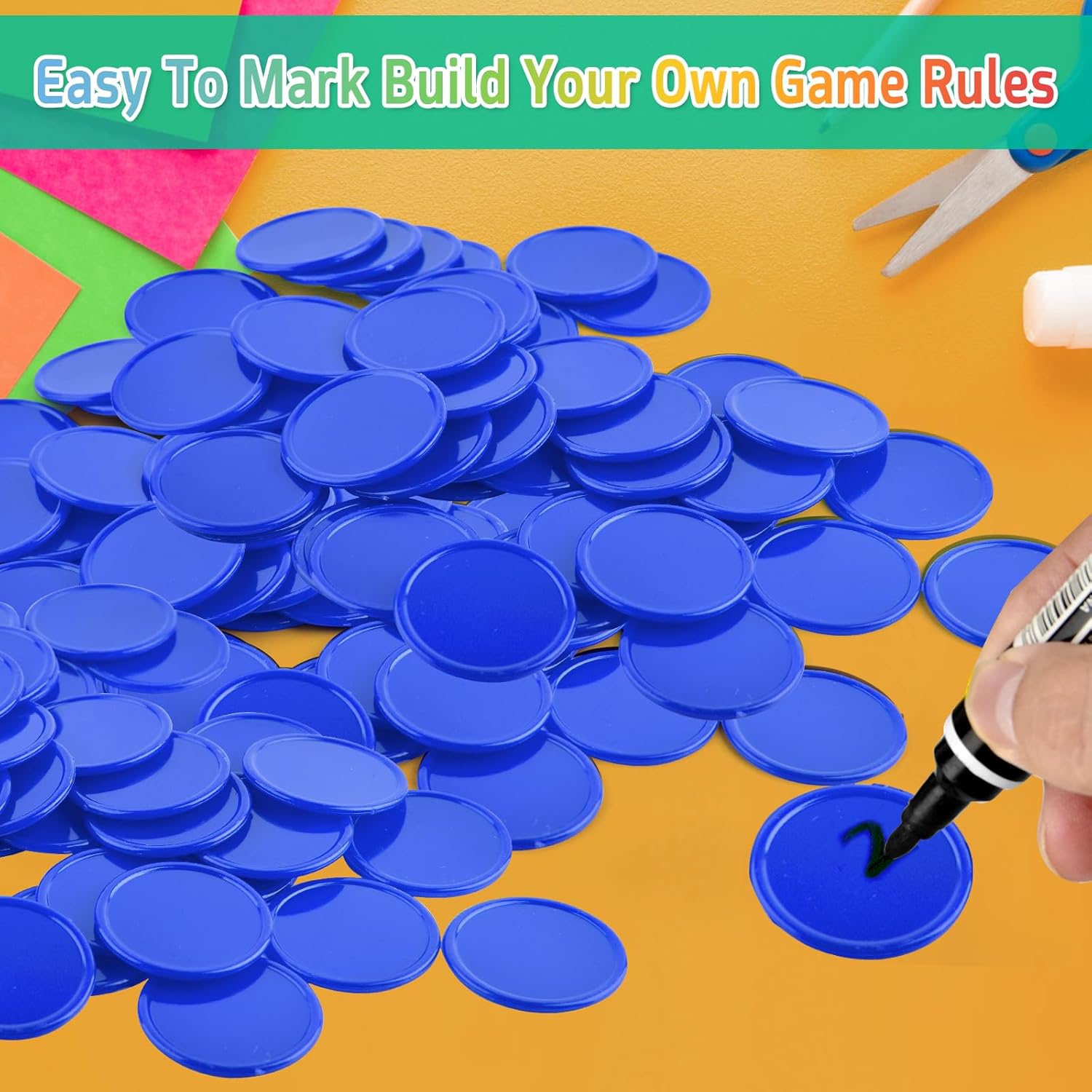 Coopay 600 Pieces Plastic Poker Chips Learning Counters Disks Bingo Chip Counting Discs Markers for Math Practice and Poker Card Game Tokens, Teaching Rewards, 38 mm/ 1.5 Inches (Blue)