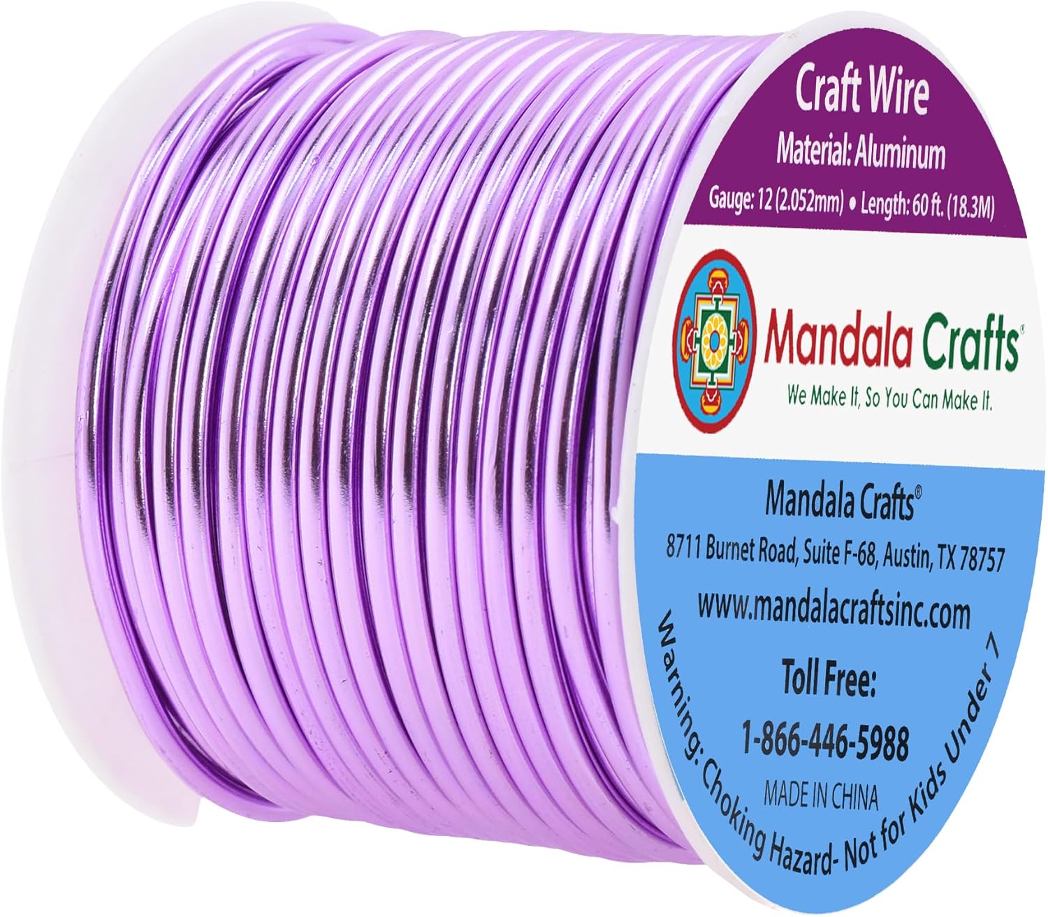 Mandala Crafts 12 Gauge Anodized Aluminum Craft Wire for Jewelry Making - 60 FT Colored Flexible Lavender Wire - Bendable for Bonsai Armature Crafting Sculpting