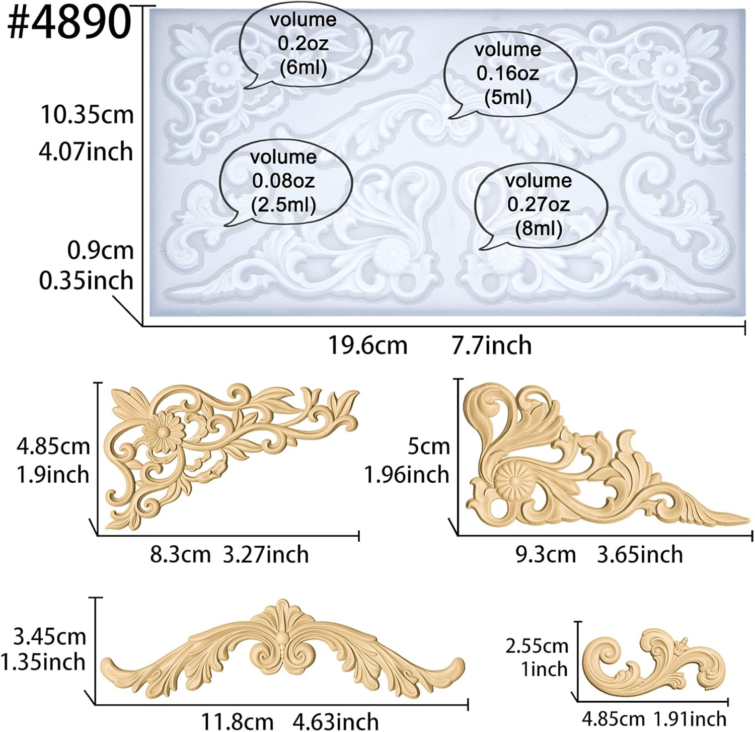 Art Molds for Polyclay Air Dry Clay Plaster Epoxy Resin Fondant Cake Decor Rococo Embellishment