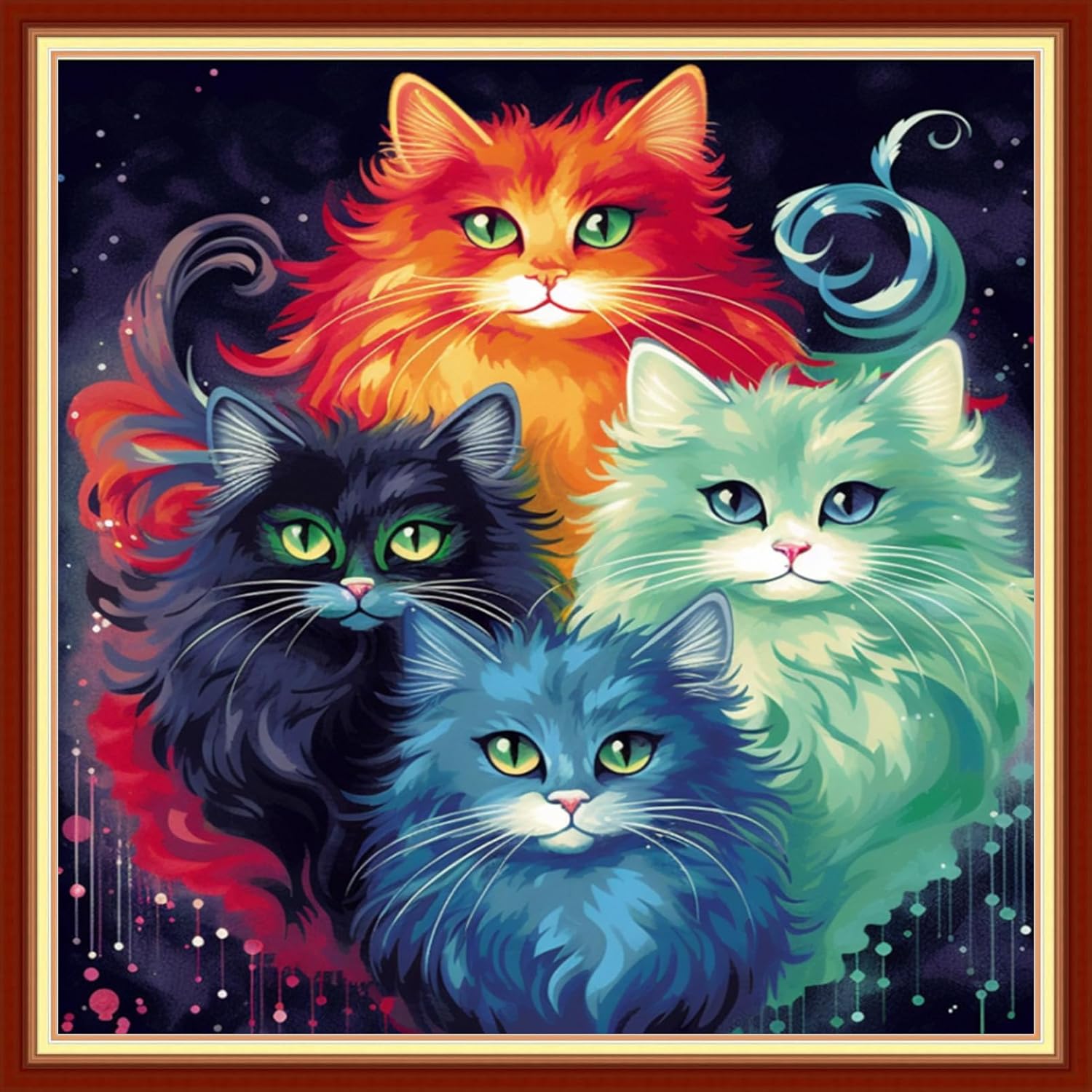 DMCVIVR Stamped Cross Stitch Kits for Adults Beginners Embroidery Kits 11CT Needlepoint Kits Cross Stitch Patterns Embroidery Patterns&Colorful Cat 18x18 inch