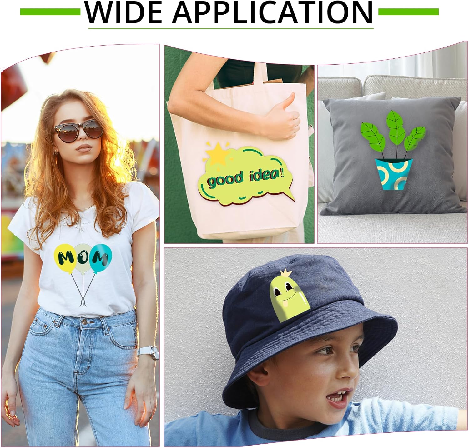 - ✔Durable and Long-lasting✔Our iron on vinyl for T-shirt can be machine washed repeatedly, allowing your design to maintain its original color and shape without fading, tearing or falling off. You need to wait 24 hours after the first wash. Clean for best results and durability
