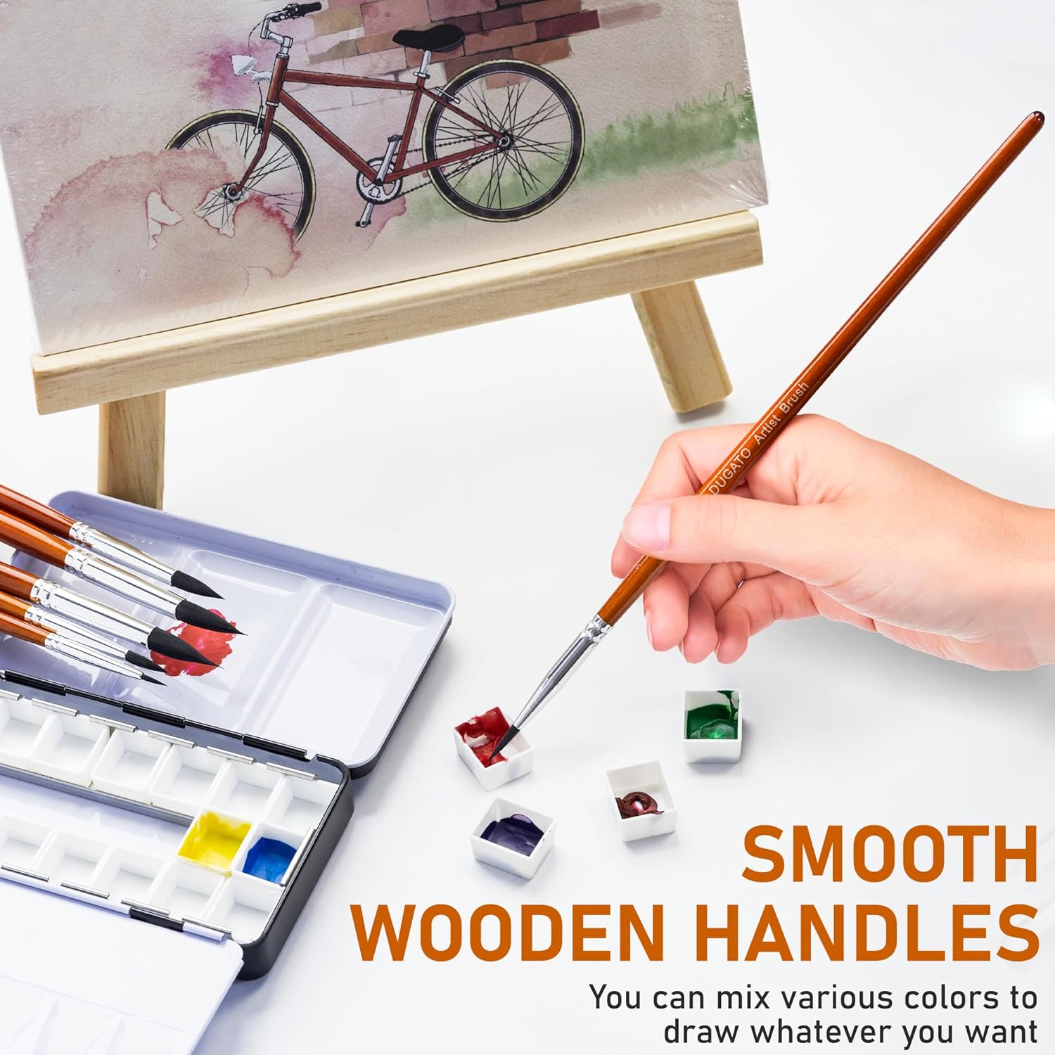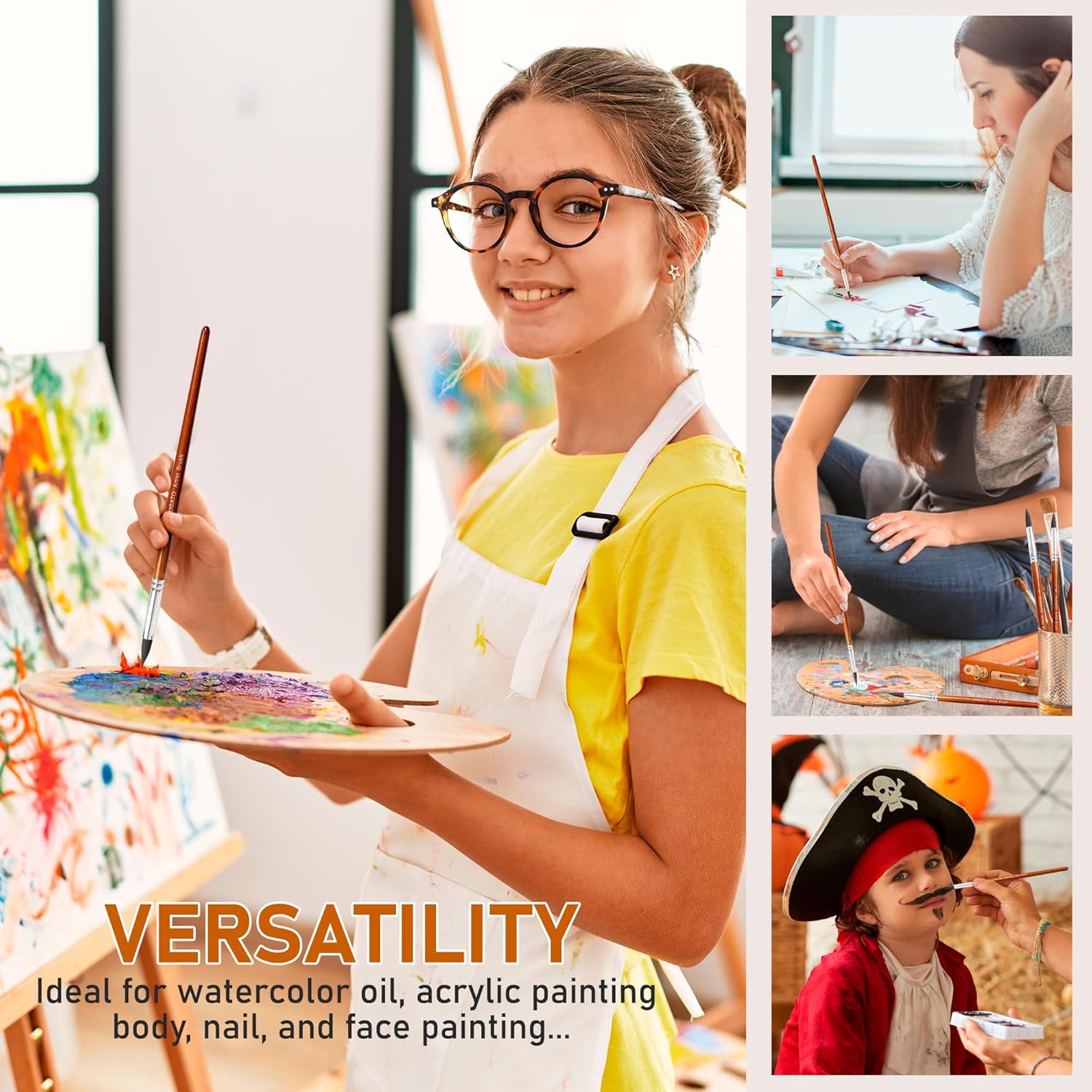 - Versatile 10-piece artist set: Unleash your creativity with 10 precision round pointed paint brushes (Sizes #0-9). Perfect for fine detailing, broad strokes, washes, and fills in watercolor, acrylic, oil, gouache, tempera, and ink. Ideal for model painting, miniatures, nail art, face & body painting.