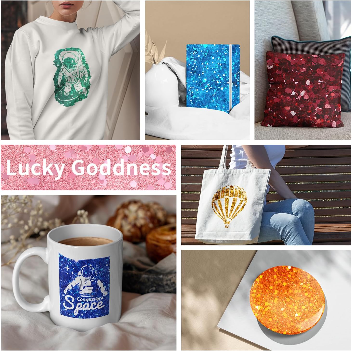 - 【 LUCKY GODDNESS SUBLIMATION TRANSFER SHEETS VS HTV】Unlike iron-on transfers or vinyl applications where your artwork is attached on top of a compatible material using adhesive,Transfer paper results in no edges or seams. The results are bright, beautiful, and seamlessly smooth transfers that are flake-proof, peel-proof, and wash-proof.