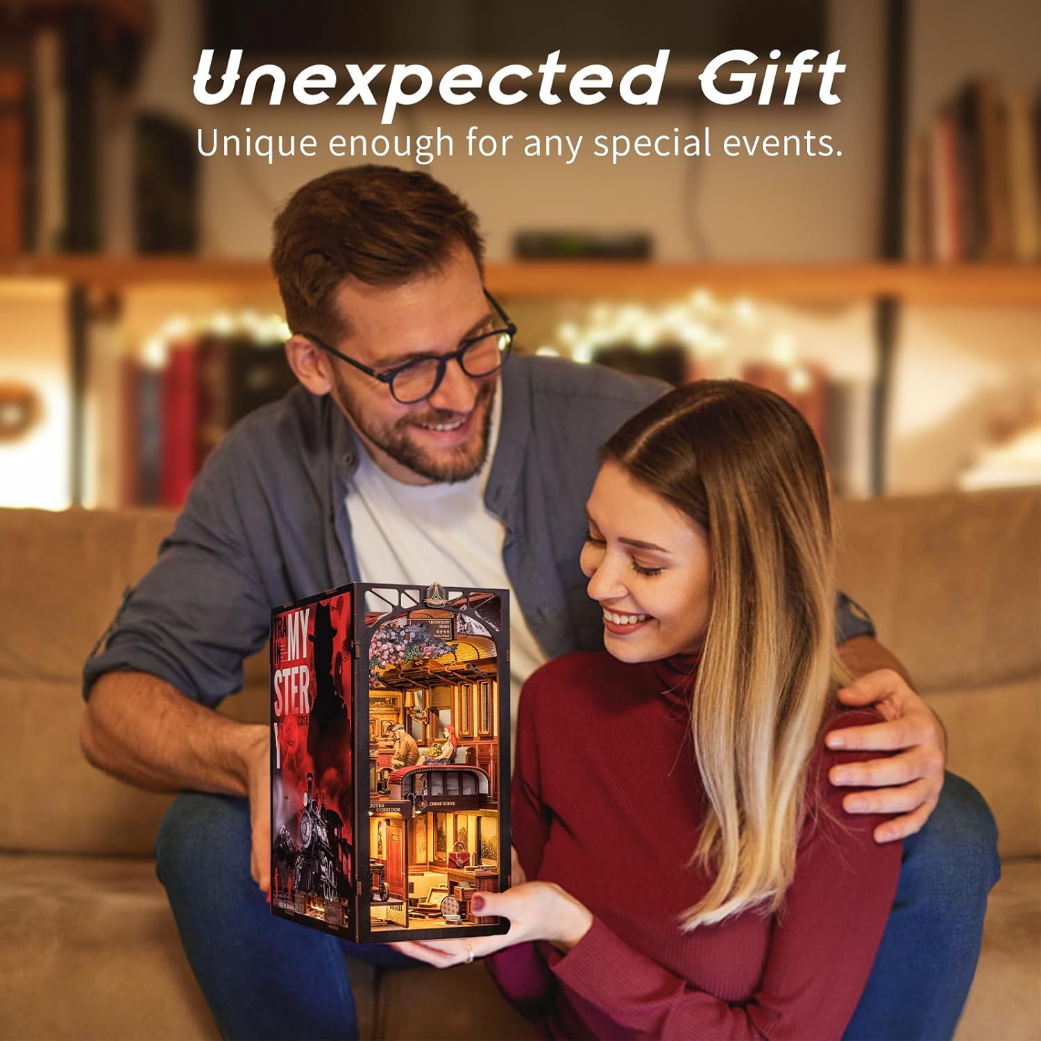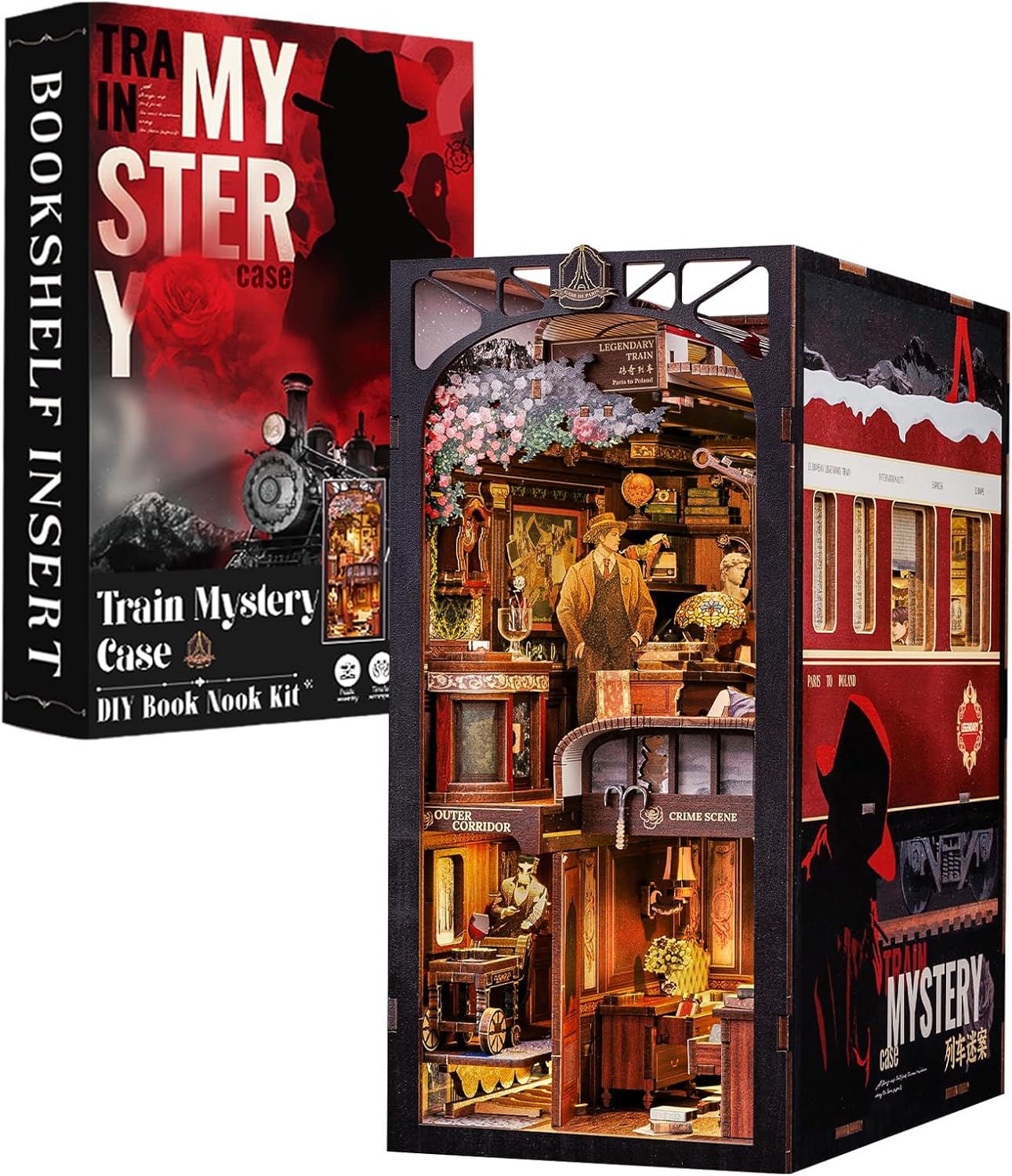 - 【Detective Book Nook Kit for Adults -Train Mystery Case】 The DIY book nook kit is made from wood, high quality and durable. Every piece is laser-cut and pre-colored, no need to be painted. There is also with a step by step instruction to follow it