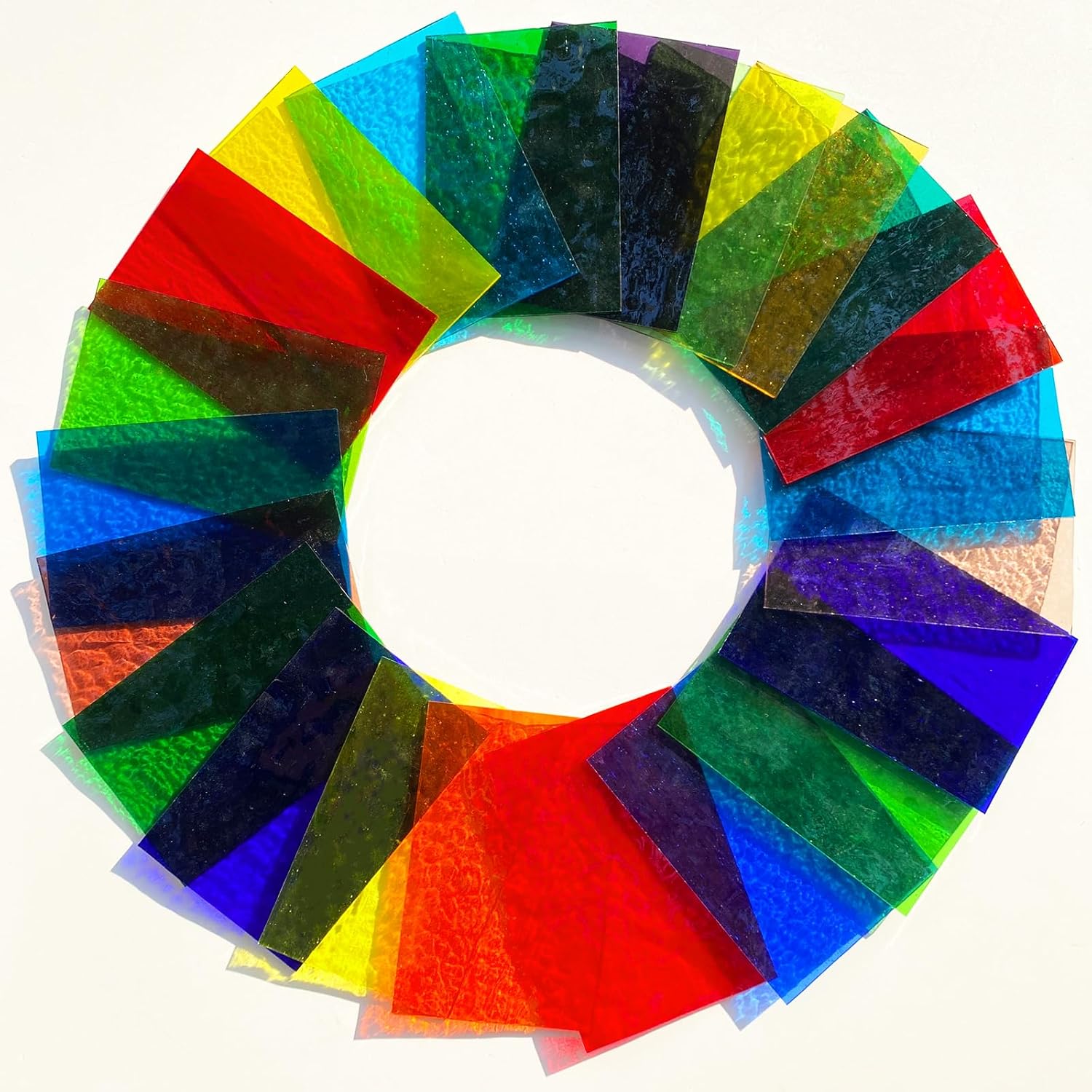 - Value Pack: 24 sheets colorful transparent stained glass sheets variety pack