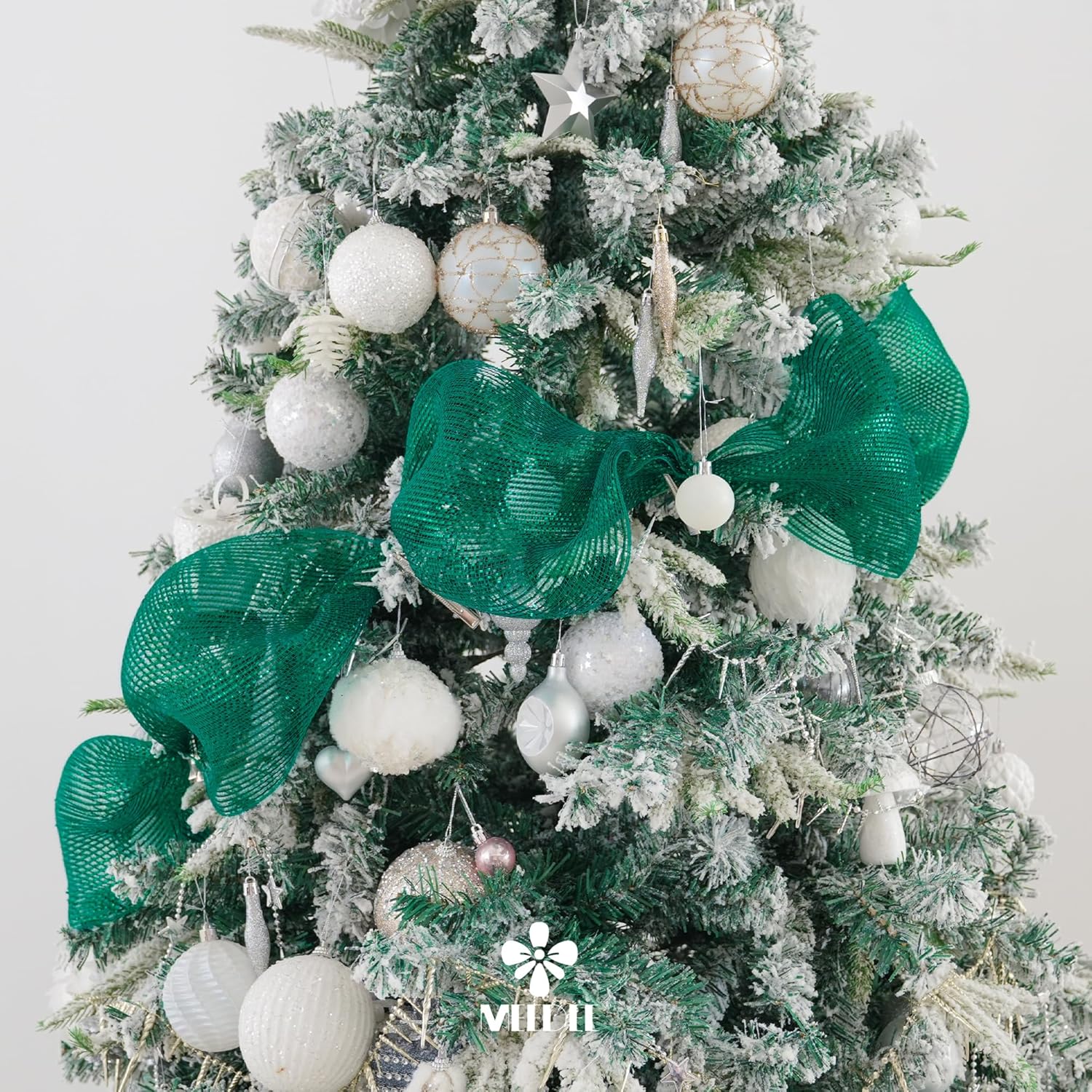 MEEDEE Forest Green Deco Mesh 10 Inch Deluxe Wide Foil Metallic Mesh Fabric Dark Green Mesh Ribbon for Christmas Tree, Wreaths, Garland, Gift Wrapping, Bows Making (30 Feet)
