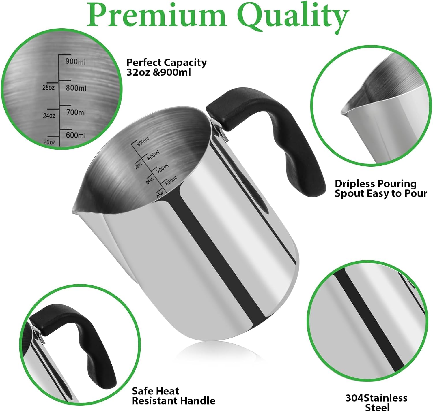 - 🧡【Candle Melting Pot】This candle making pouring pot can hold 32oz/900ml of molten wax. This melting wax pot is made of high quality 304 stainless steel, with strong Anti-rust, high temperature and corrosion resistance. There is no dripping at the pouring mouth, which controls the flow and prevents leakage.