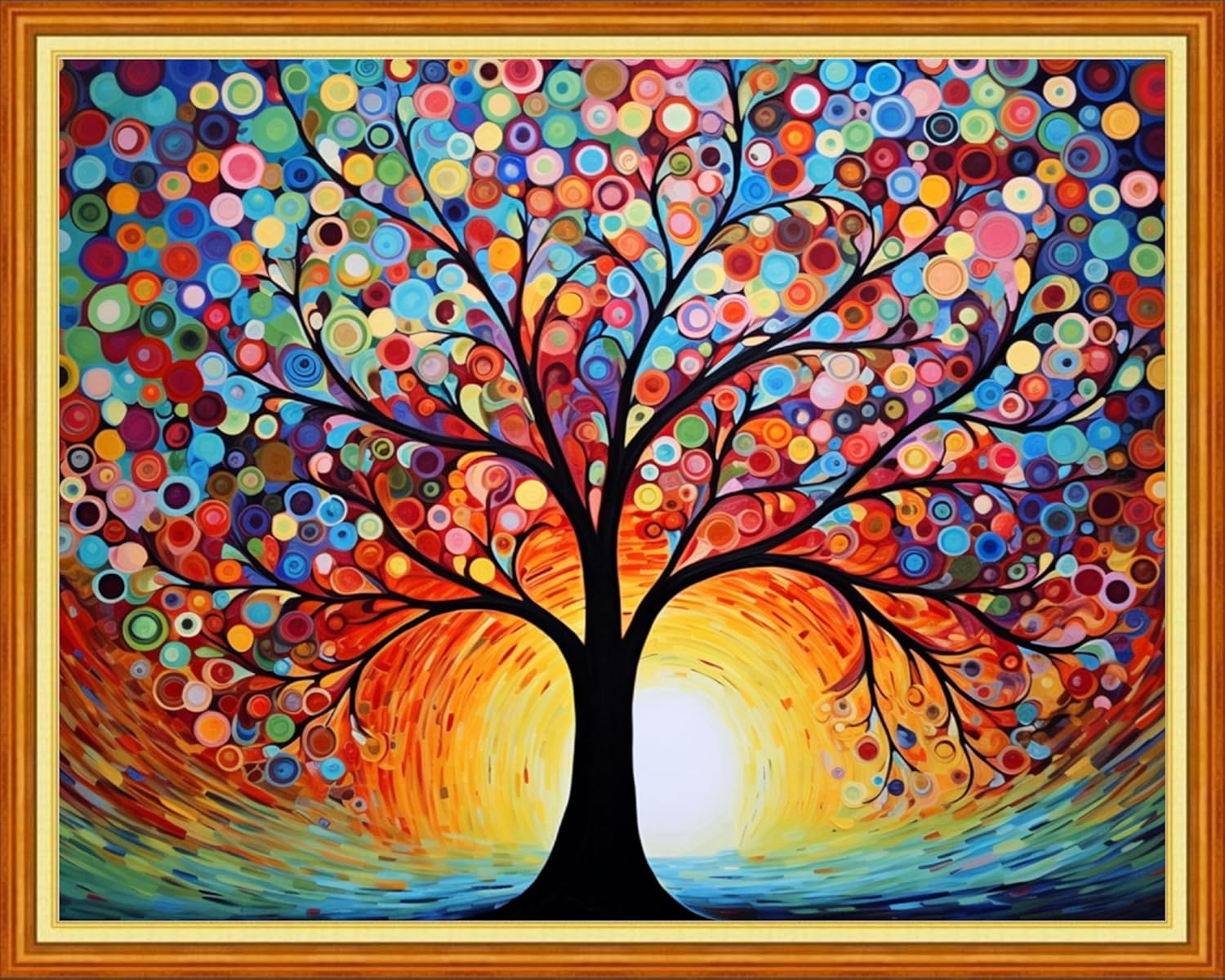 Dimxvean Stamped Cross Stitch Kits,Cross Stitch Kits for Adults Beginners,Embroidery Kits Full Range of Cross Stitch Stamped Kits Needlepoint Kits Cross Stitch Patterns-Color Moonlight Tree 16x20 inch