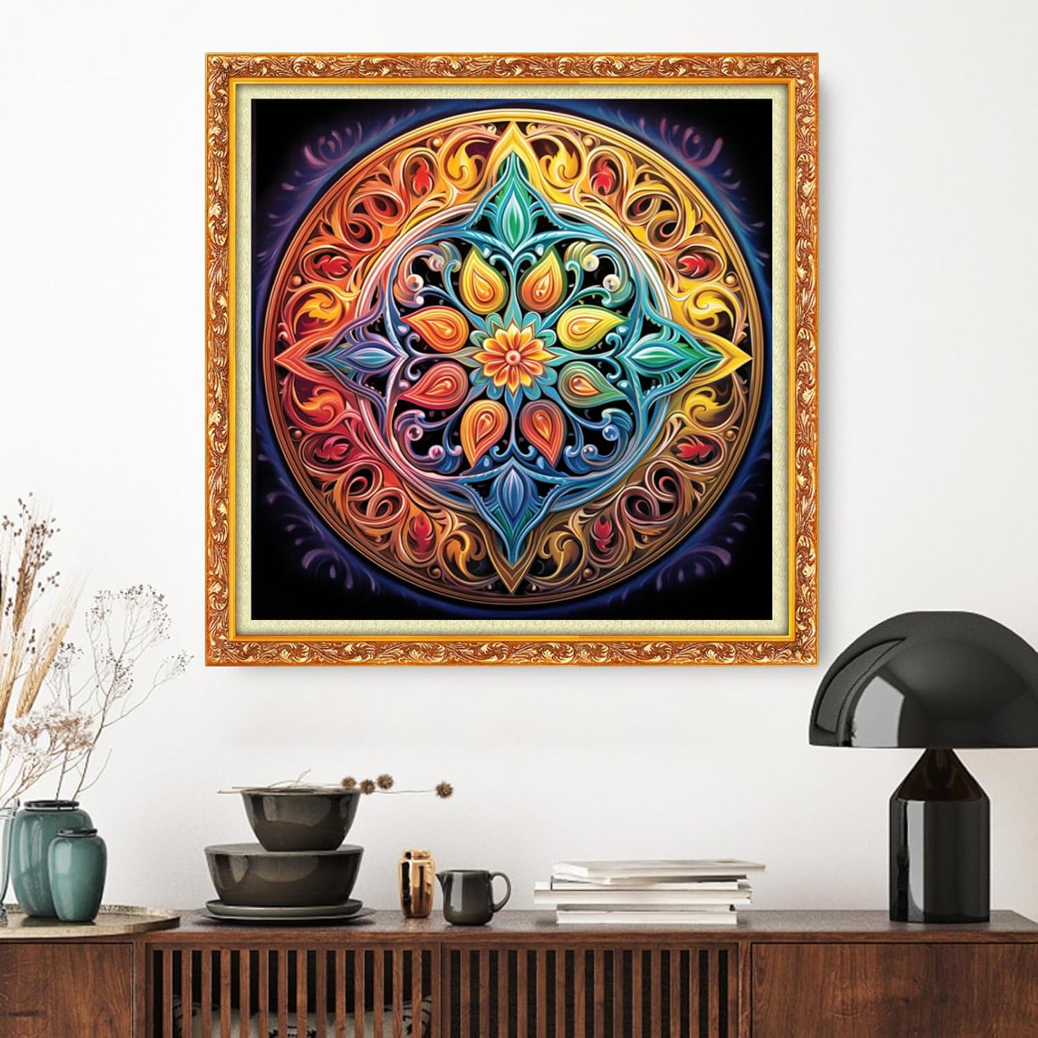 Dimxvean Stamped Cross Stitch Kits,Cross Stitch Kits for Adults Beginners,Embroidery Kits Full Range of Cross Stitch Stamped Kits Needlepoint Kits Cross Stitch Patterns-Mandala Wreath 18x18 inch