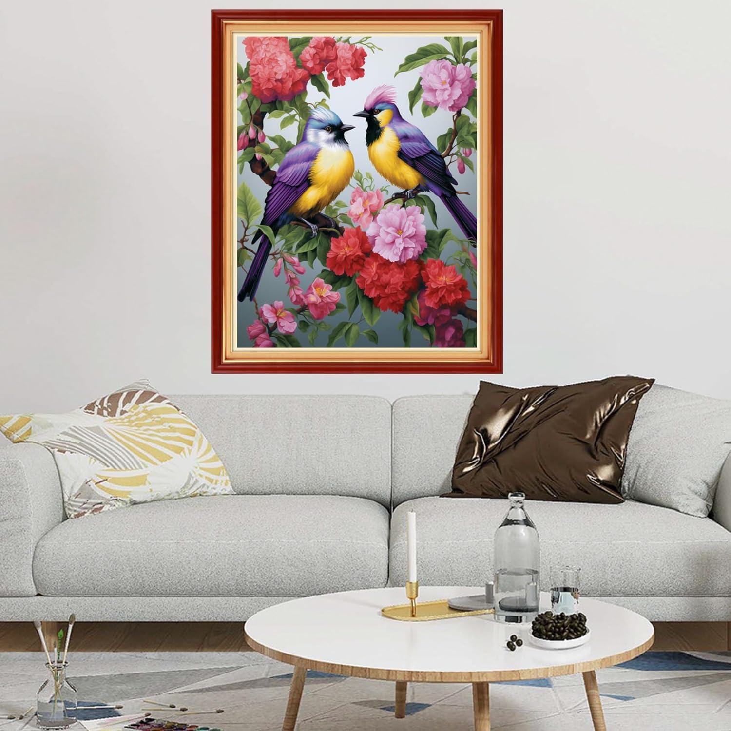 Dimxvean Cross Stitch Kit, Bird Wreath 16x20 inch, Easy to Use Cotton Thread, HD Preprint, All Ages, Unisex, Modern Traditional, Nature Theme