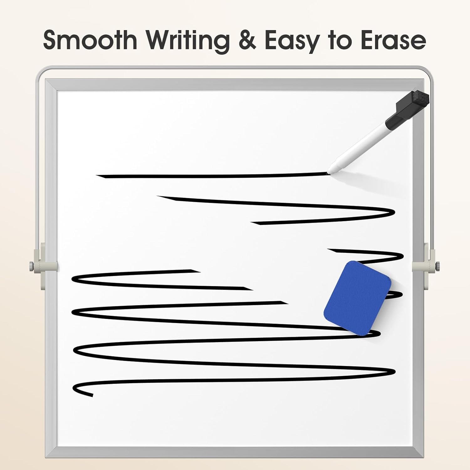 MaxGear Small White Board with Stand, 10" x 10" Double-Sided Magnetic Aluminium Frame Whiteboard, Mini Dry Erase Board for Drawing, Kitchen Grocery List, Memo