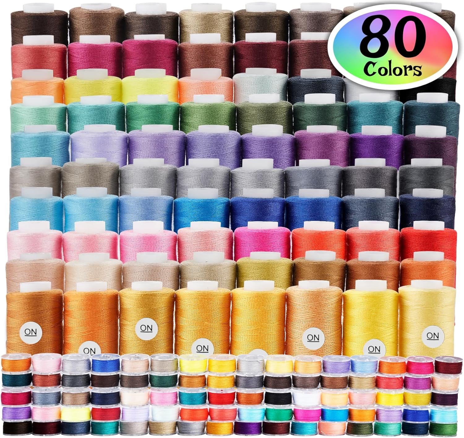 - 【Assorted Bright Colors】With 80 colors to choose from sewing thread for sewing machine. Bright and vibran thread, meet the requirement of projects needing variety of colors. Also can be matched with various colors.