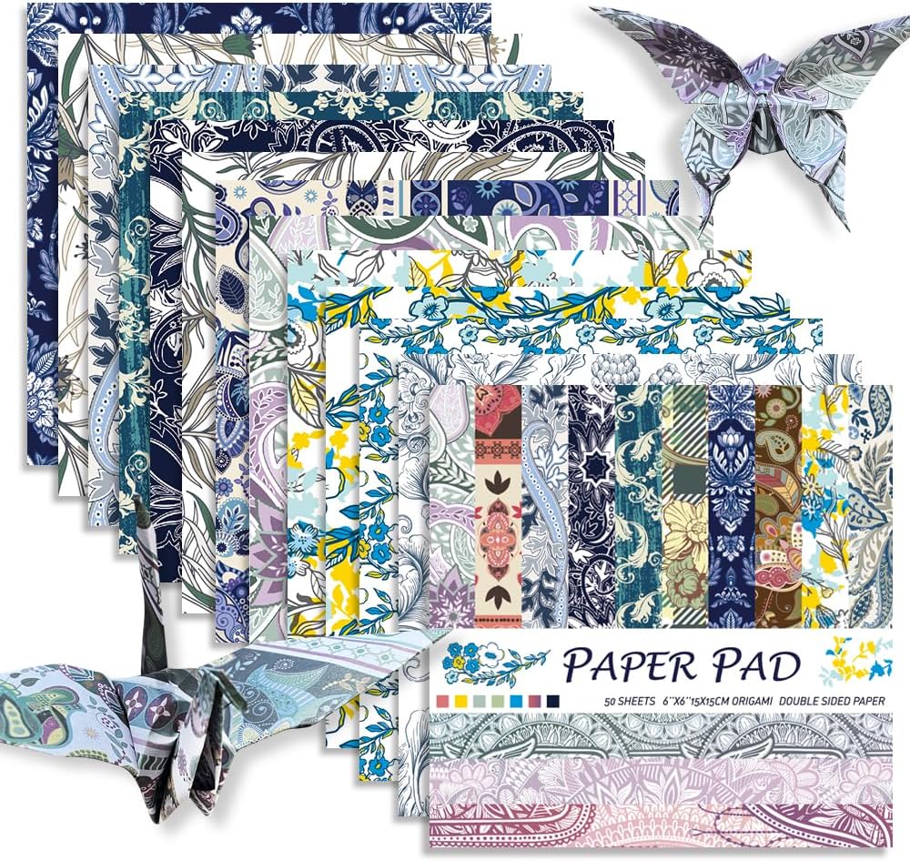 Square Origami Paper 6x6 Double Sided 50 Sheets 50 Colors 70GSM Origami Kit Japanese Chiyo Easy Fold Arts Crafts DIY Handwork Beginner Baroque