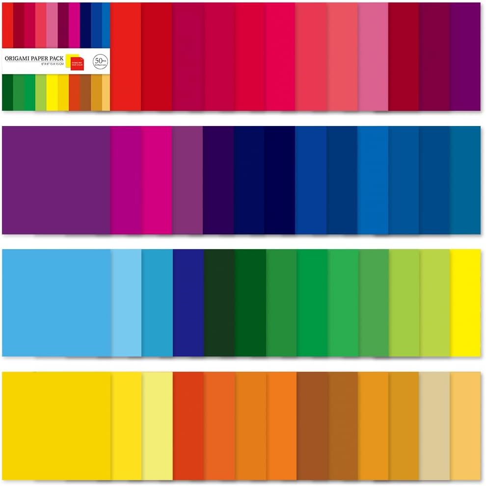 Square Origami Paper 6x6 Double Sided 50 Sheets 50 Colors 70GSM Origami Kit Japanese Chiyo Easy Fold Arts Crafts DIY Handwork Beginner Solid Color