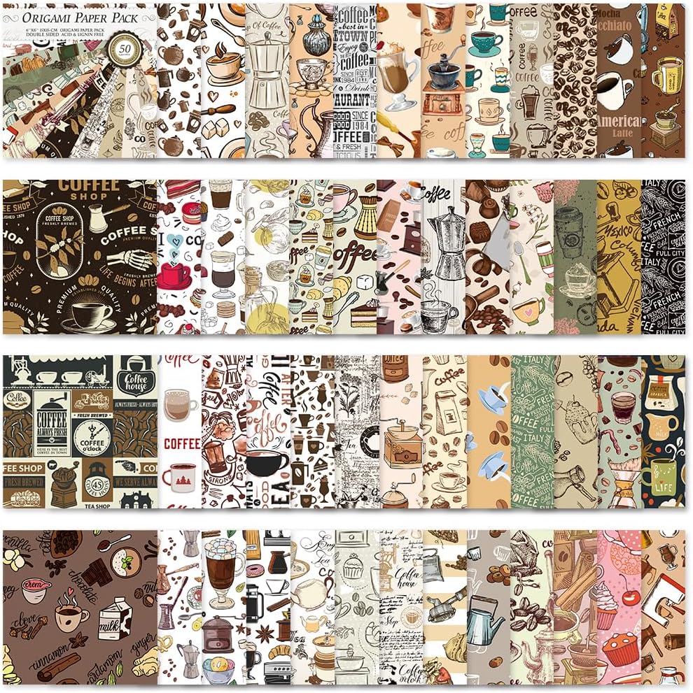 Square Origami Paper 6x6 Double Sided 50 Sheets 50 Colors 70GSM Origami Kit Japanese Chiyo Easy Fold Arts Crafts DIY Handwork Beginner Coffee