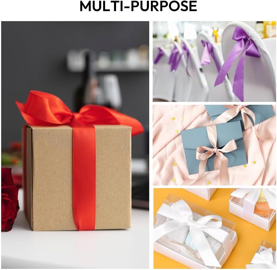 - 【Bright Color】: The satin ribbon for wrapping has multiple choices for colors. The solid color ribbon will not fade easily and is durable in different situations and occasions like birthday, wedding, party, baby shower, back to school, holiday decorations, home coming, anniversary, family gathering and more.