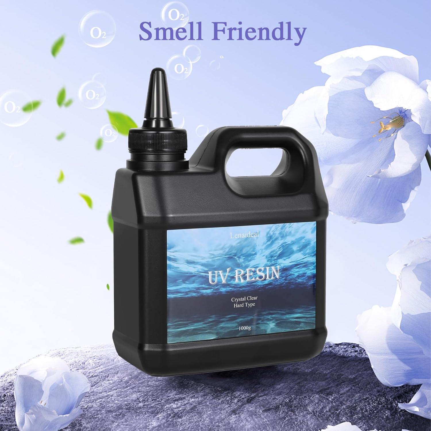 - 【Upgrade Premium 1000g UV Resin】 Lenaideal uv resin not only keep the Crystal Clear, High Gloss and yellow resistance, but also made of environment friendly materials which keeps ultra-low odor. Ideal for all kinds of uv resin creations.