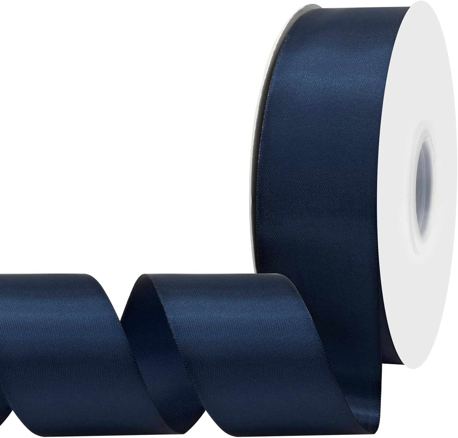 Navy Blue Satin Ribbon 1-1/2" X 50 Yards Solid Color Double Faced Ribbons Perfect for Crafts Wedding Decor Bow Making Arts Sewing and More