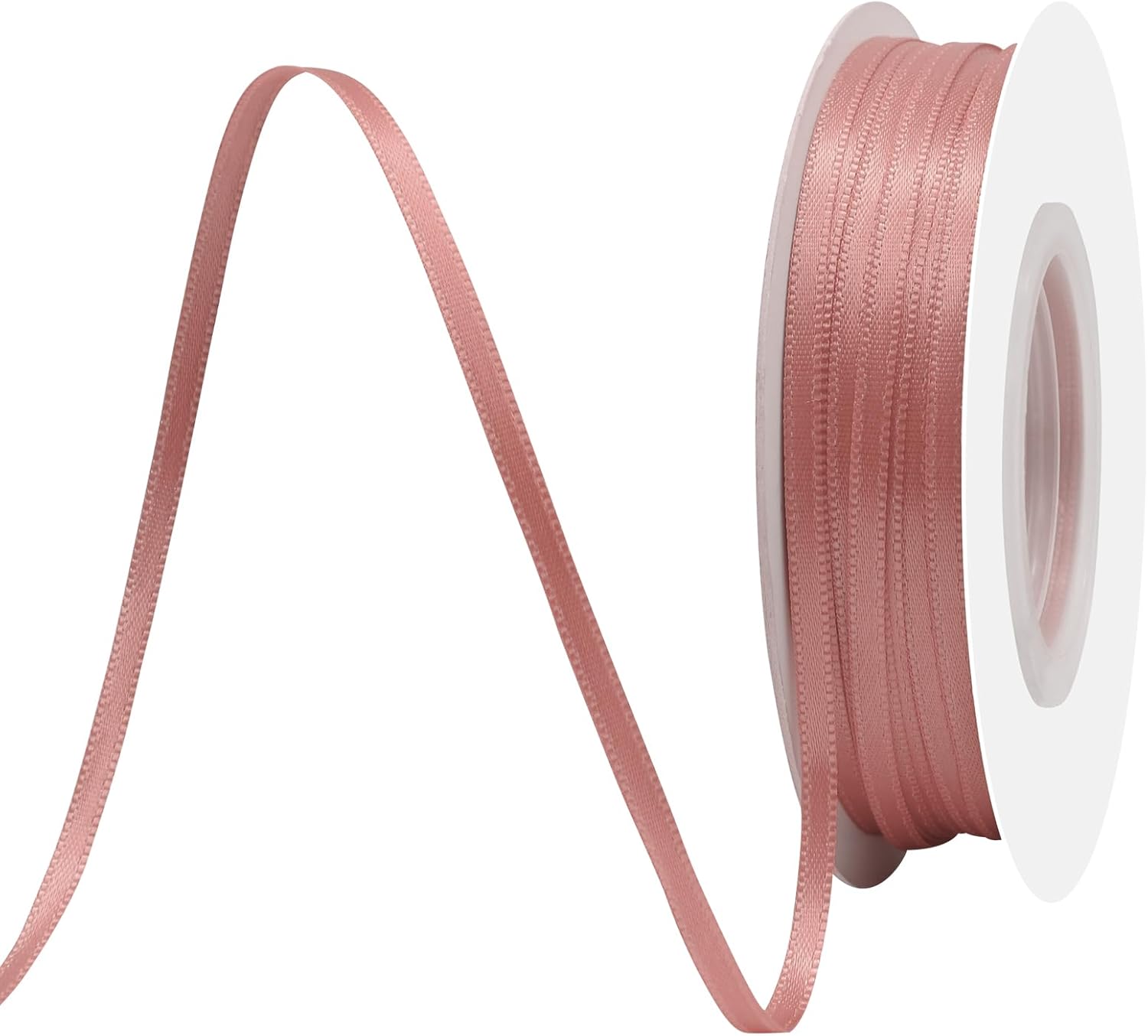 Dusty Rose Satin Ribbon 1/8" X 50 Yards Solid Color Double Faced Ribbons Perfect for Crafts Wedding Decor Bow Making Arts Sewing and More