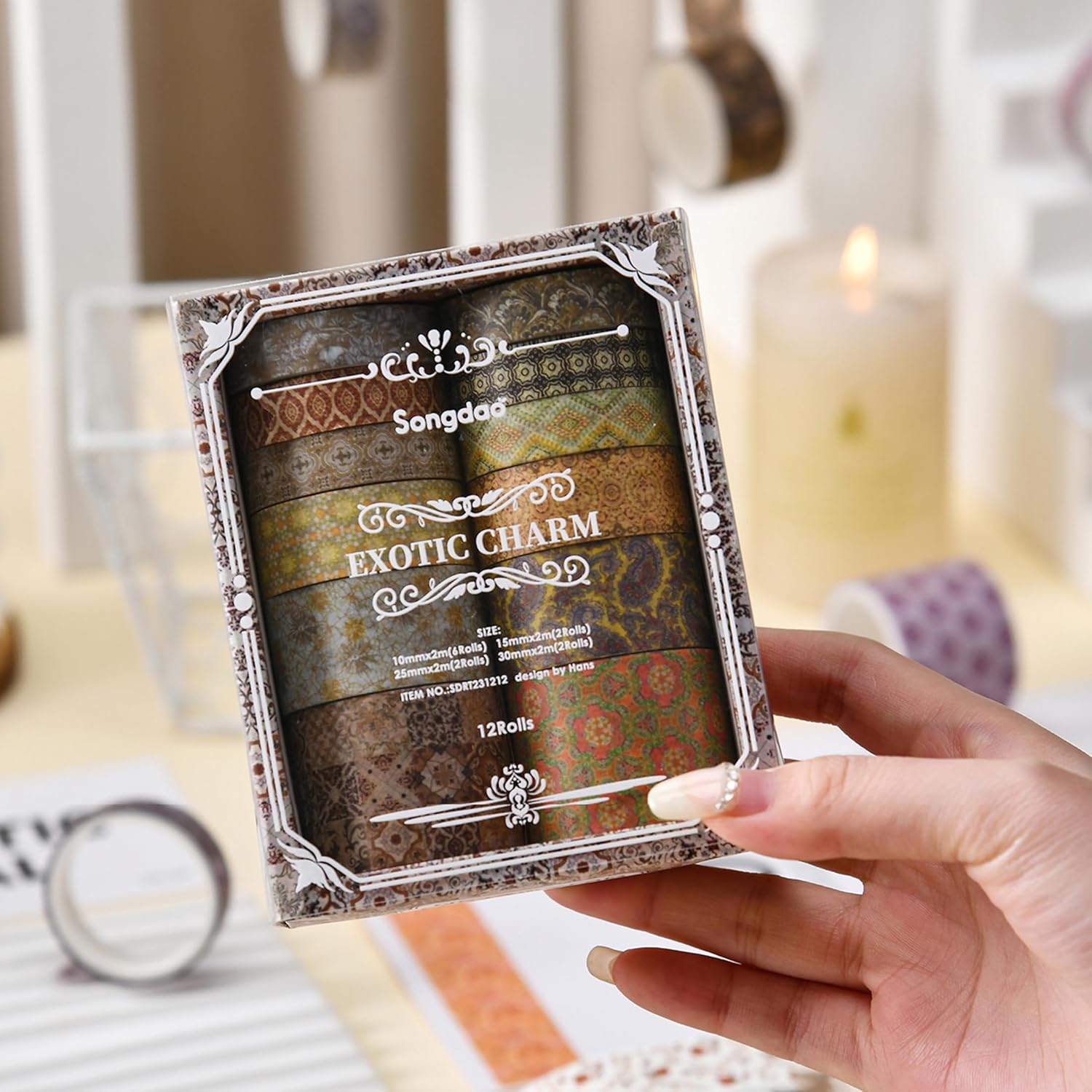 - 👍【ETHNIC DESIGN】This decorative tape set is composed of 12 different exotic patterns, with a total of 6 combinations to choose from (no repetition). It shows cross-cultural allure of international mystique, and they will make your works full of vitality!