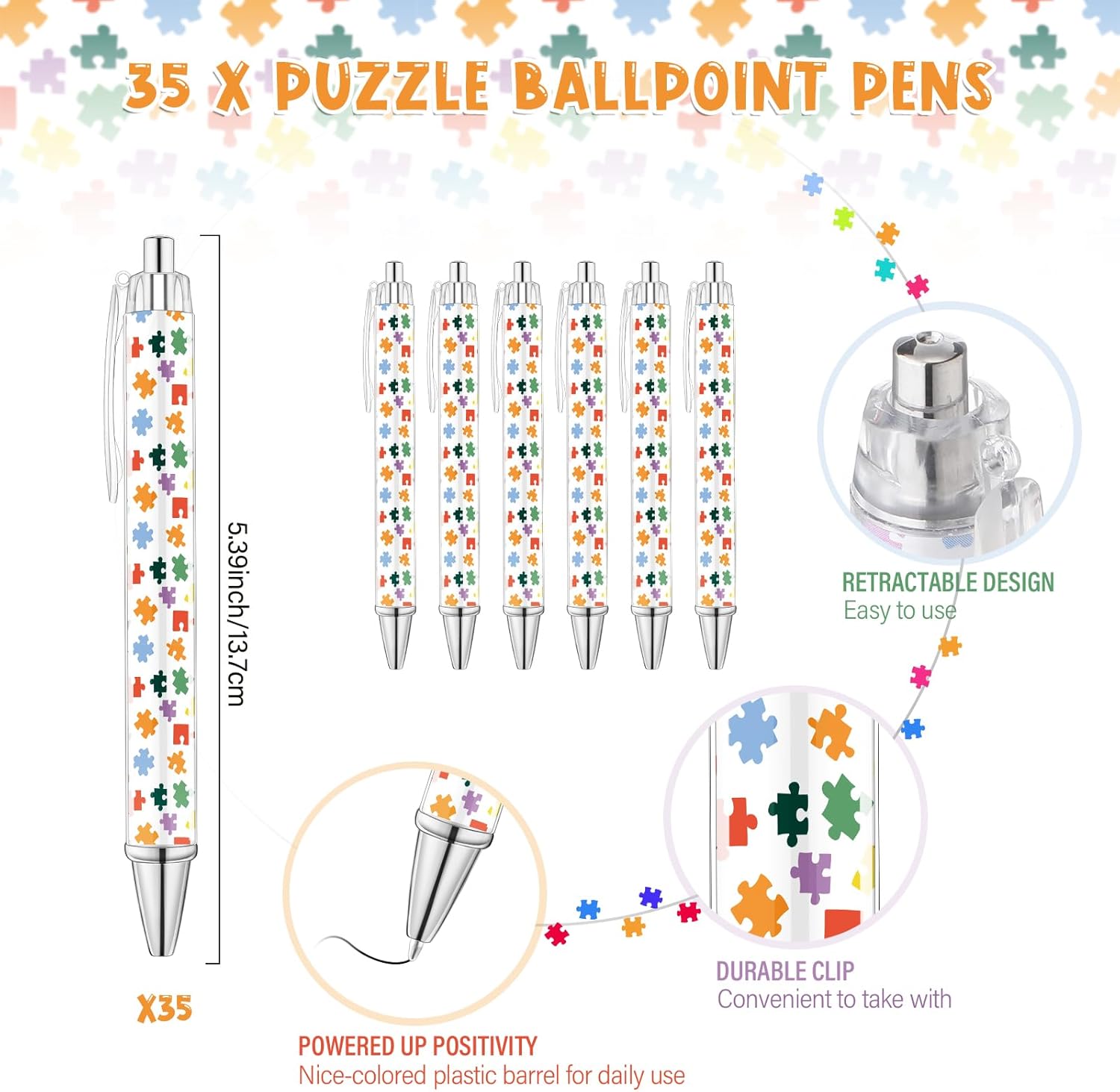 - Unique and Thoughtful Puzzle Prints Design: this gift set combines the theme of team with carefully designed puzzle prints, making it a unique and thoughtful gift for colleagues; Including 35 retractable ballpoint pens, with an insert paper printed with intricate puzzle prints, 35 thank you card printed with puzzle pattern, expressing appreciation and affirmation for your team members
